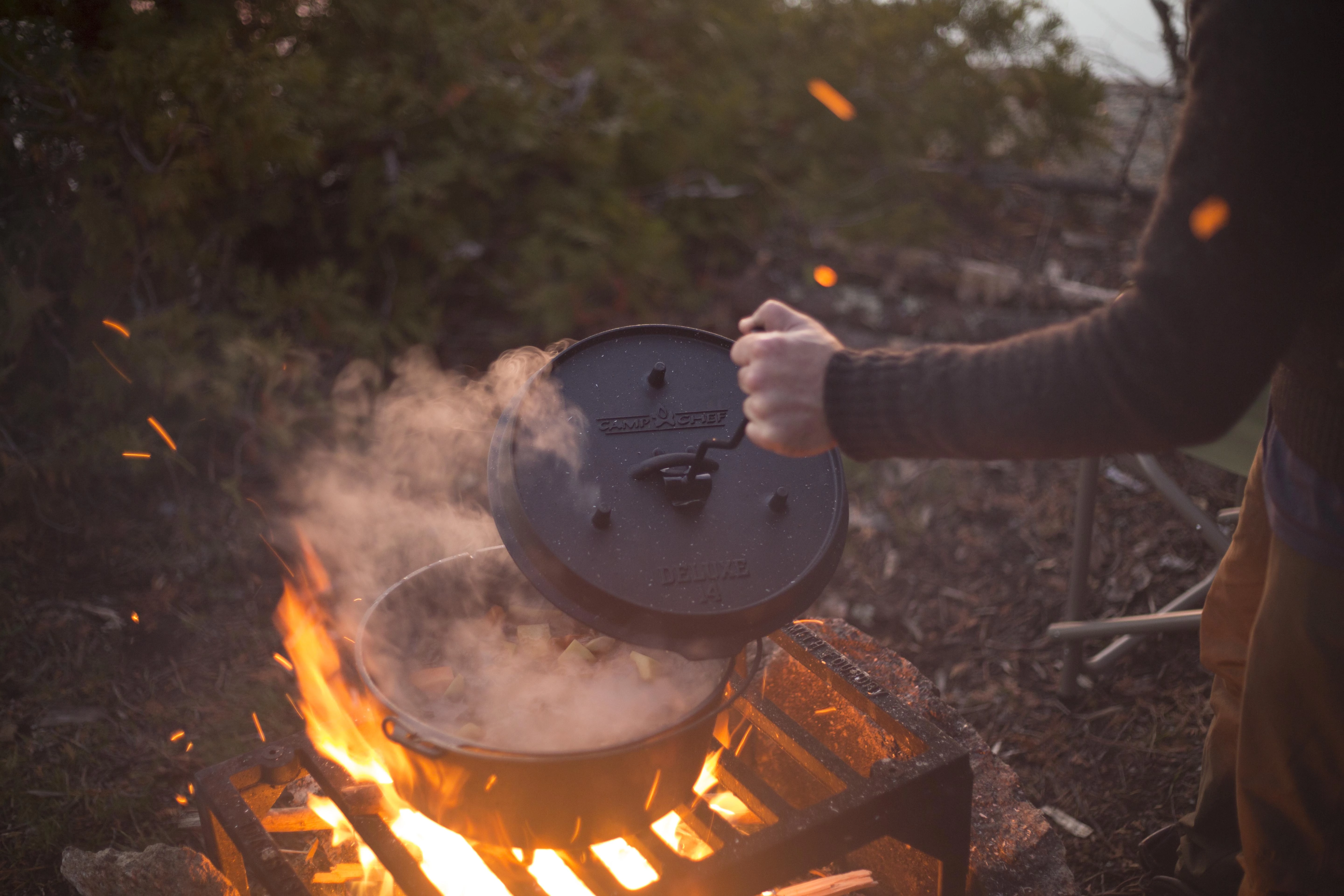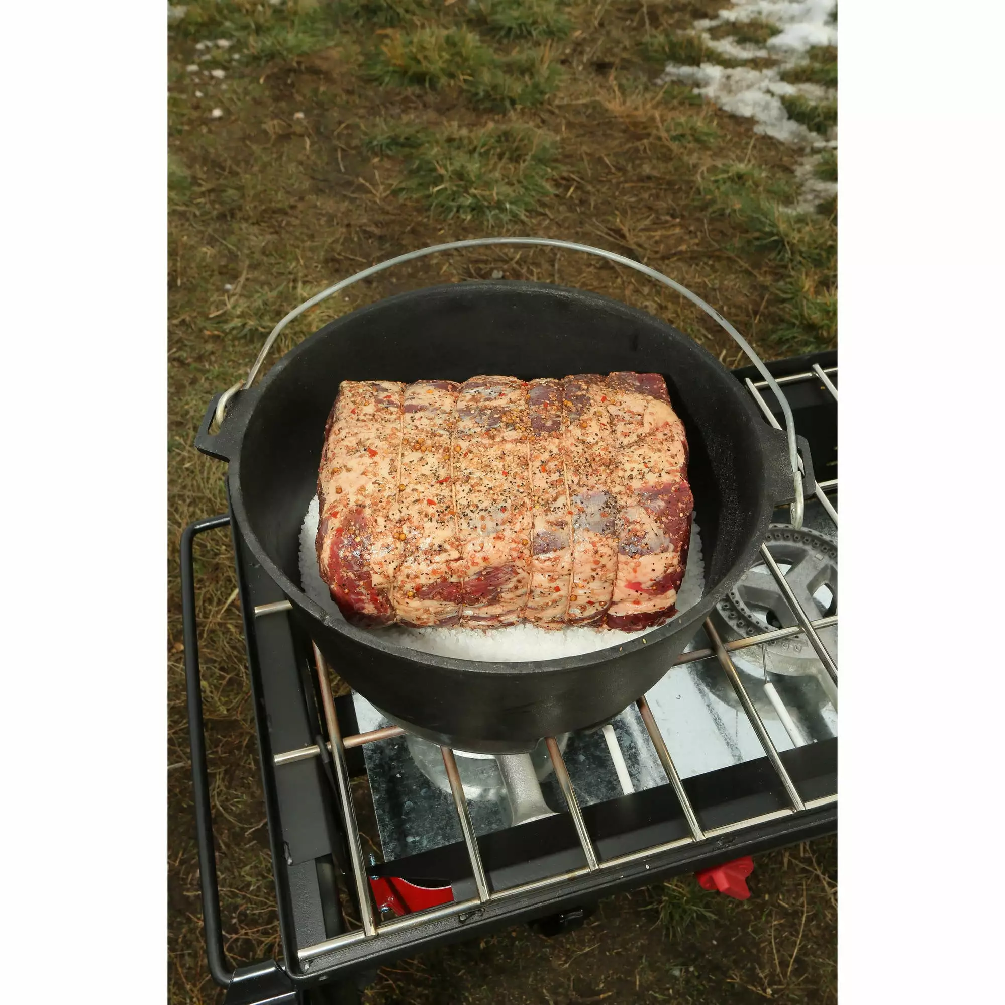 Never leave the meat and potatoes at home when you go camping thanks to this magical lil Camp Chef 12 Quart Cast Iron Deluxe Dutch Oven Camping Skillet. This stud muffin of a dutch oven has all the space you need for breakfast. lunch. and din din. With 12 quarts of room for all food groups. it gets the job done on the campsite or at the tailgating party. It has some hot features including a built in thermometer. a loop handle on the lid. and it can be used as a skillet or griddle. Again. studly. Also enjoy some tasty seasoning tips from the included starter booklet that will help you serve 16 to 20 people. Eat good when you’re in Mother Nature’s hood with the Camp Chef 12 Quart Cast Iron Deluxe Dutch Oven Camping Skillet.