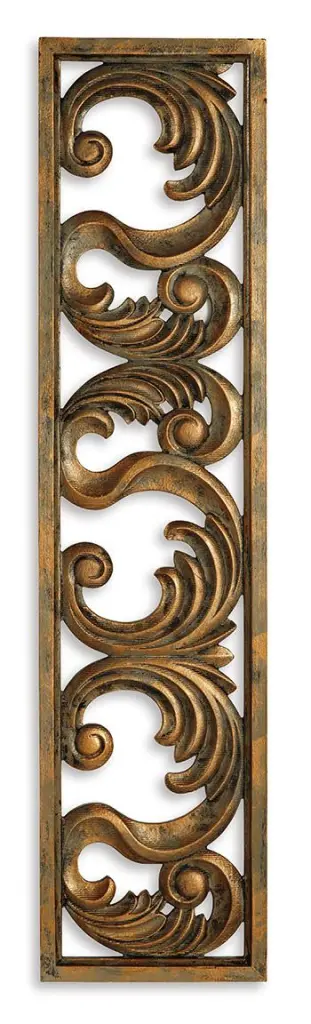 Grace your home with an epic, expensive feel without breaking the bank. This wall sculpture’s stately scrollwork design is dressed in an antiqued goldtone finish. Hang it in your entryway to set a tasteful tone, or place it next to picture frames on a gallery wall to create a polished and poised look.