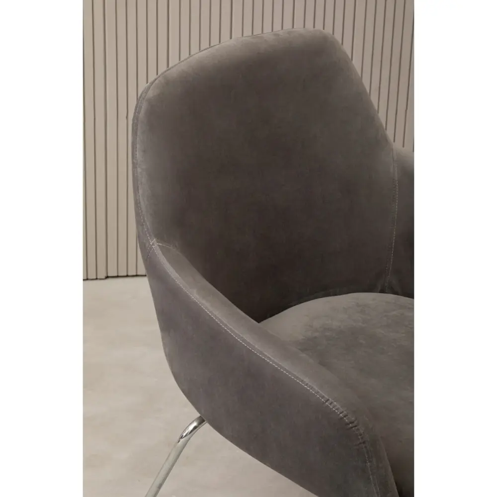 Its balanced atop metallic legs in a reflective chromium finish that creates a luxury appeal. Their splayed design complements the chair’s stylish aesthetic and furthers its striking elegance.