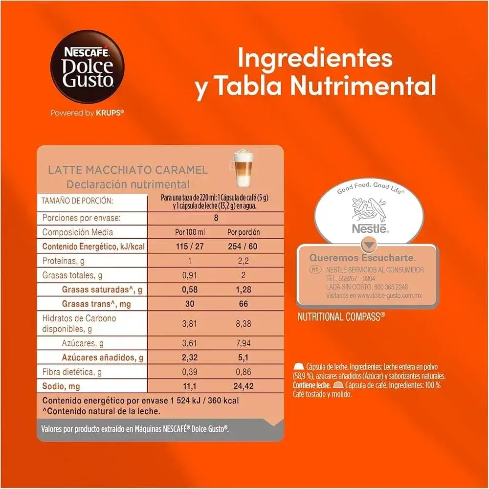 Endulza tus momentos con el delicioso Latte Macchiato Caramel de Dolce Gusto, una combinación perfecta de leche cremosa, espresso suave y un irresistible toque de caramelo. Cada cápsula ofrece una bebida equilibrada, aromática y con una espuma abundante que transforma tu pausa en un verdadero placer.
