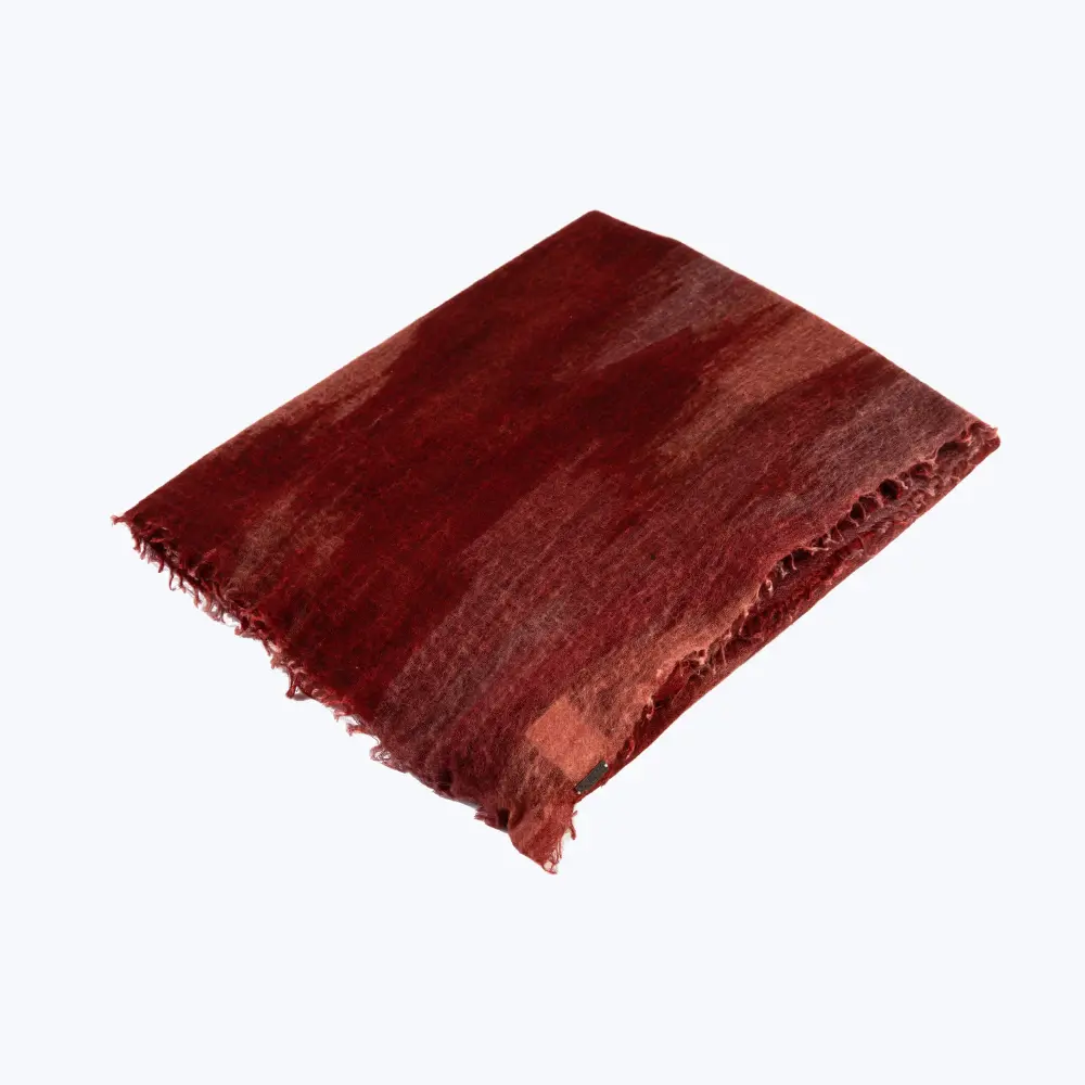 The Semi-Felted Souffle Print throw is woven from the finest pure goat hair wool then our skilled artisans massage each by hand to create the felted effect that plays with transparencies. A relaxed and stylish look with a warm and resilient quality but still featherlight. This piece combines texture and color to create a handmade cashmere.