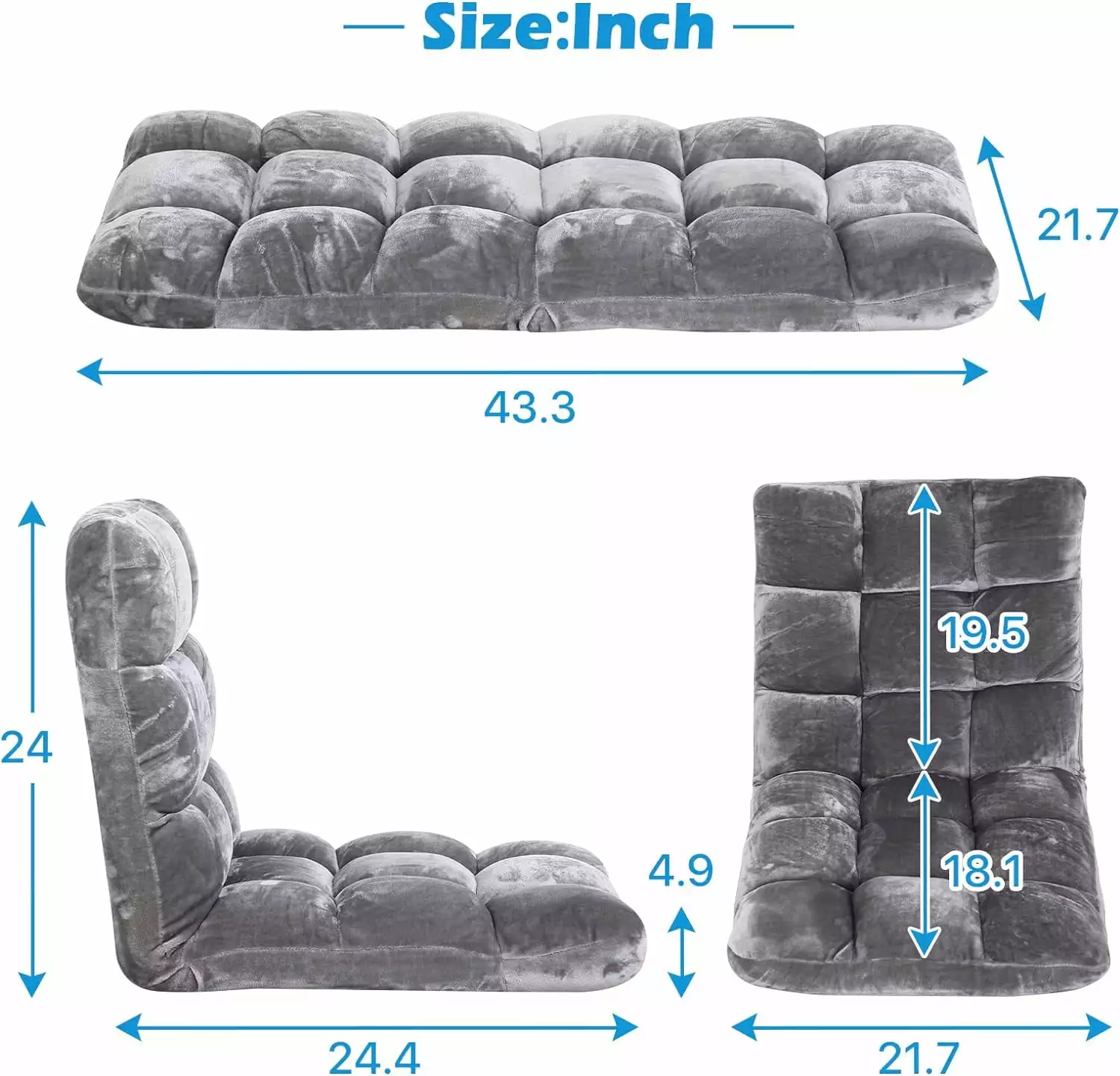 - **Multi-Angle Adjustment**The folding floor chair can be adjusted from multiple angles to suit different heights and sitting positions. The backrest of this floor couch can be easily adjusted from flat to upright. and the structure is stable. safe and comfortable for all ages.