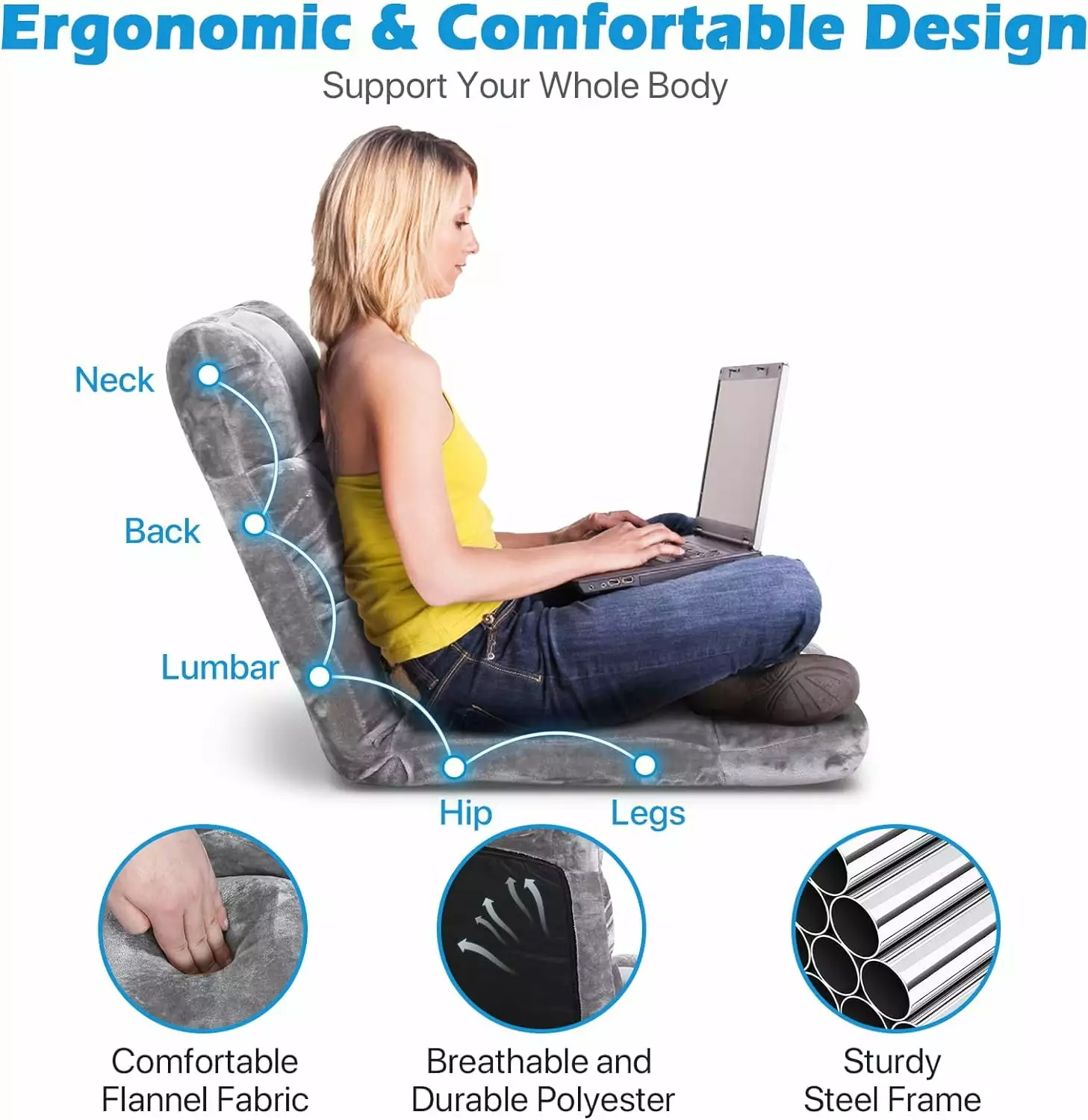 The adjustable reclining chair is perfect for living rooms. bedrooms. game rooms. and dorms. With the adjustable back. you can lounge in different positions. This floor chair is great for providing an additional seat in your living space for conversations. reading. playing video games. or watching television.