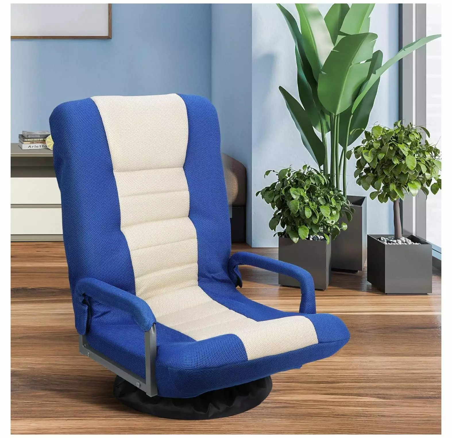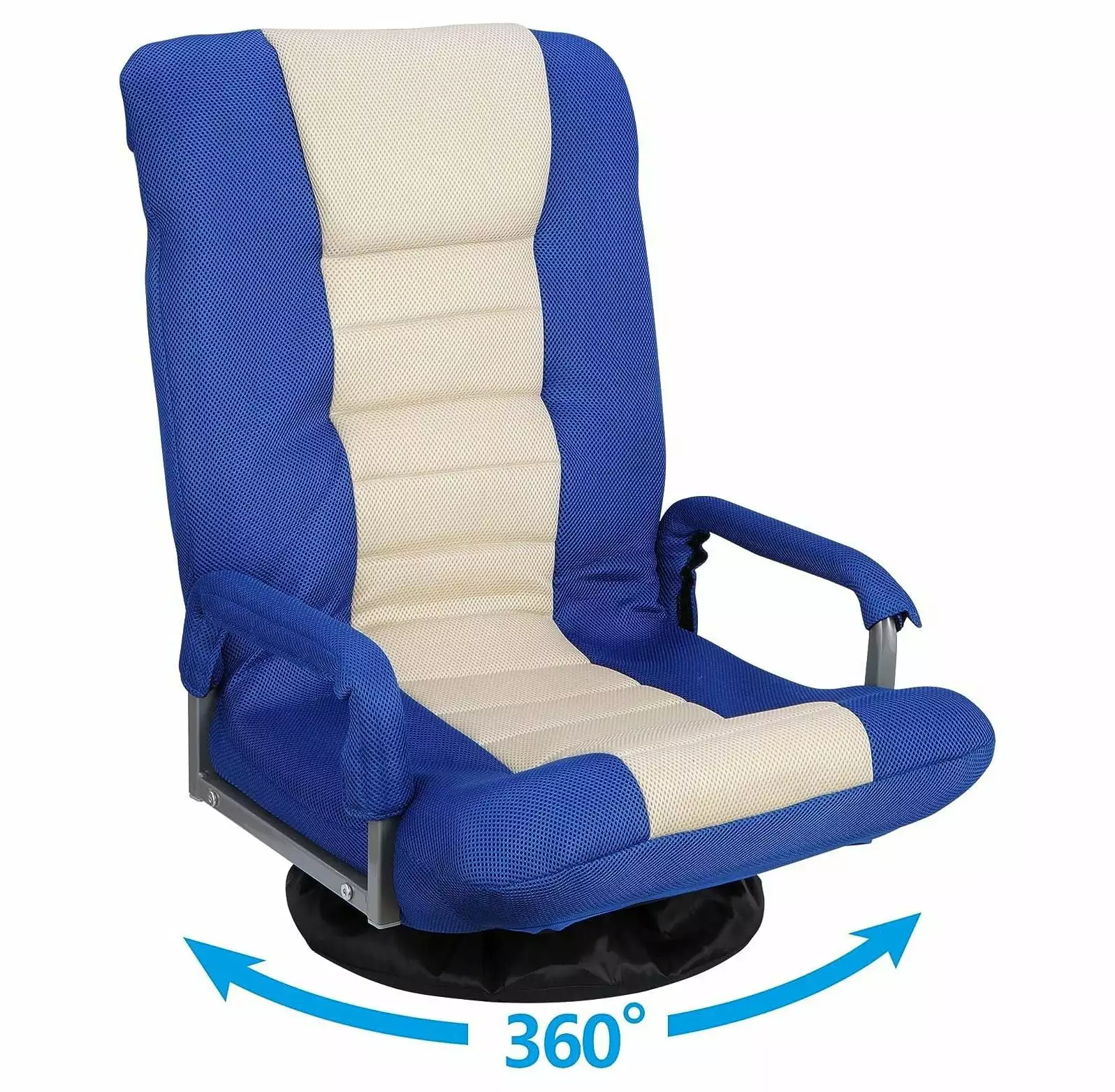 FeaturesWant to enjoy the holiday. indulge in electronic equipment. but the sofa is too far away. the floor is too hard. This foldable 360-degree swivel floor chair can solve these problemsFlexible design and durable materials ensure that the chair is strong and easy to useHigh density cotton is used as filling material. and then wrapped with mesh surface. The touch is elastic and soft. but it will not produce stuffy heat. It can cure your spirit and relieve your fatigue when you are enjoying games360-degree swivel design and five-position adjustable back. whether it’s sitting in a chair excitedly while playing games or lying lazily in a chair while watching TV. this chair can meet your needsBest choice for gamersSpecificationsOverall Dimensions: 20.28"W*26.18"D*28.94"HFloor to seat: (Front)9.84" (Side)7.28"Back: 20.87"*23.23"Seat: 18.9"*20.08"Folded size: 21.65"L*20.28"W*13.19"HWeight Capacity: 300 lbsWeight:16.58 lbsColor: Blue & BeigeNo assembly requiredPackage IncludesFloor Chair*1CodYinFI 360 Degree Swivel Gaming Chair Foldable Floor Sofa Chair for TV Reading Playing Video Games with Lumbar Support. Armrest Handles. Adjustable Backrest. Blue & Beige