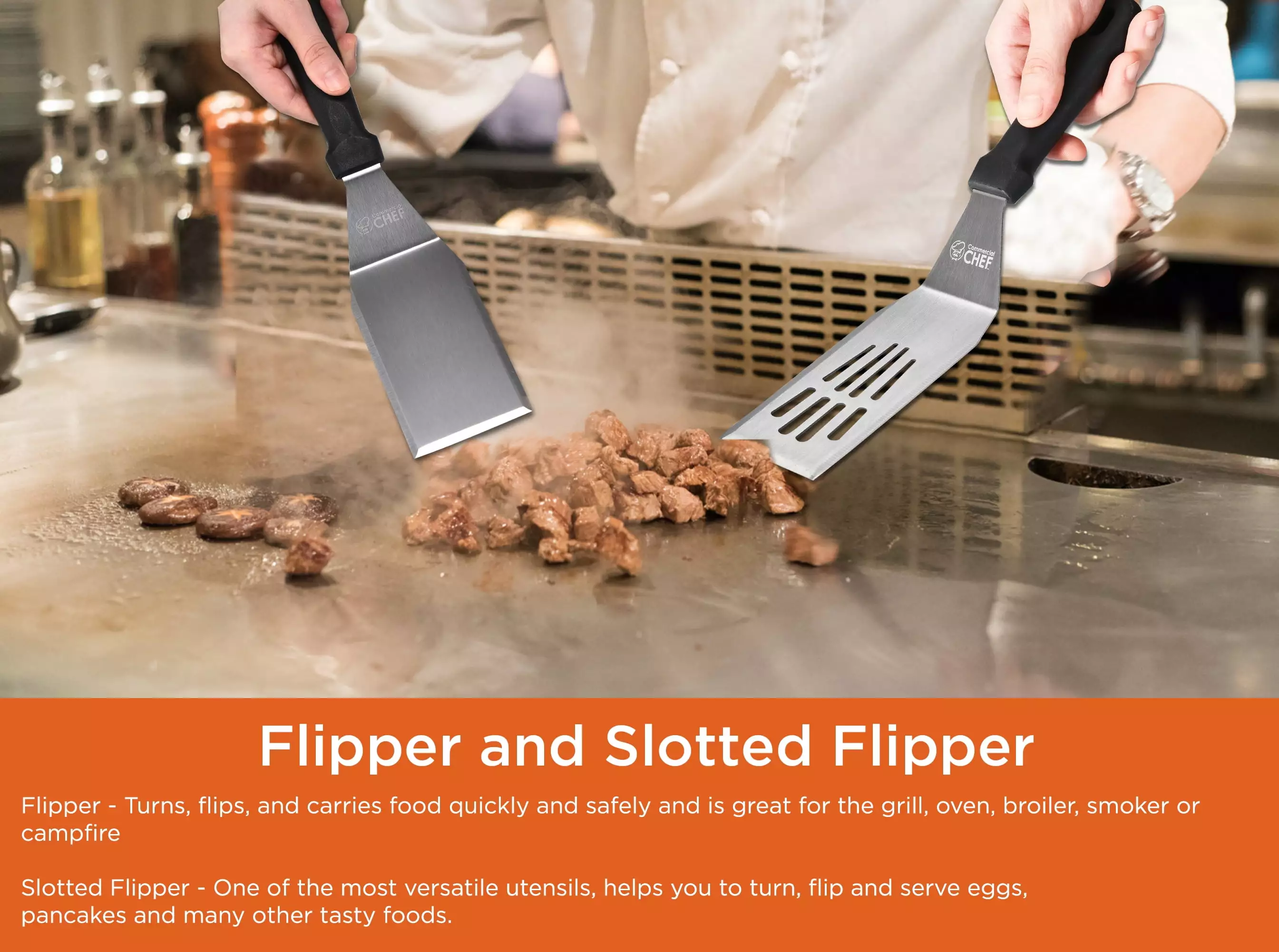 - A MUST HAVE – Whether you’re just looking to cook up some burgers or make a hearty breakfast. these flat-top grill tools are great for your cooking needs. Suitable for any griddles like a flat top. hibachi. teppanyaki. and cast iron. compatible with Camp Chef and Blackstone griddles.