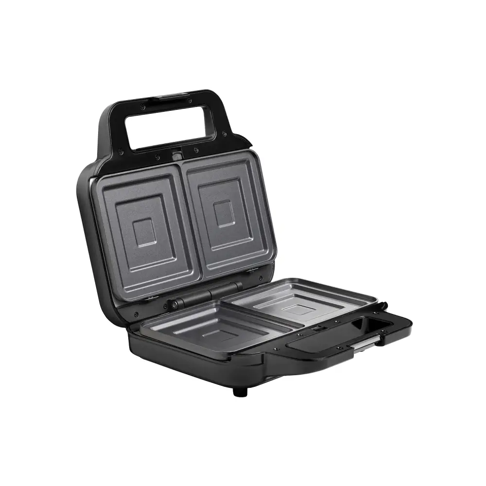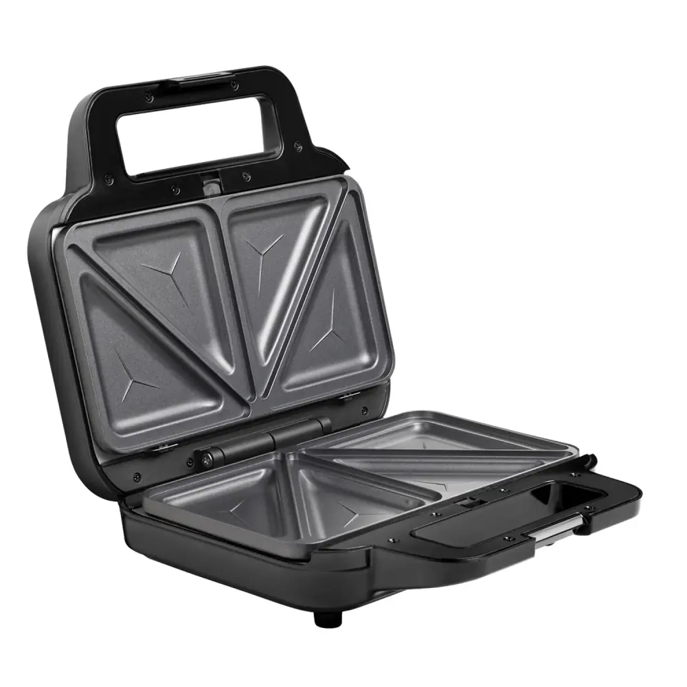 The sandwich maker is equipped with control LEDs. Thanks to the cold handle, you will not burn yourself while cooking, and the safety hinge will ensure t