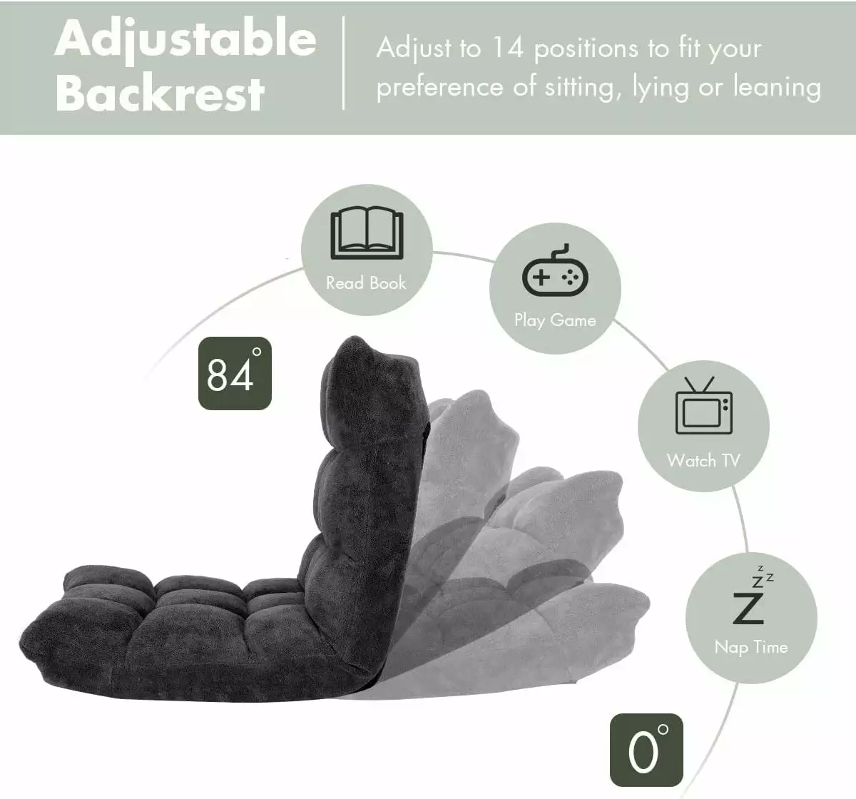 **Multi-purpose Floor Chair** This versatile padded chair can be used as a floor lounge chair. meditation floor chair. sleeping bed. gaming chair or lazy recliner. ideal for playing games. watching television. or relaxing with a captivating read in hand. It also provides an excellent ground seat for creative work or group discussion in the office.