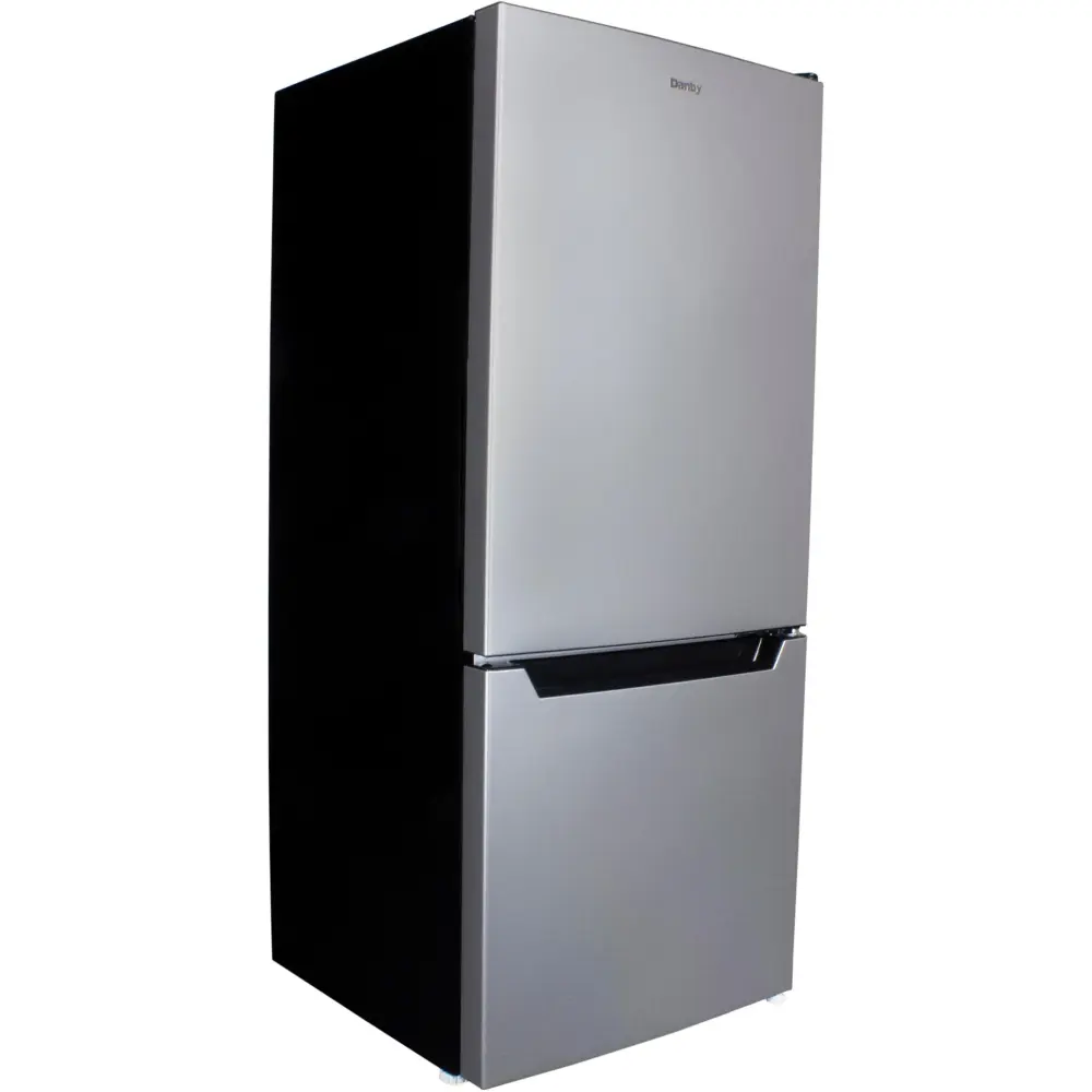 This modern and compact 4.1 cu. ft. bottom-mount mini fridge includes 3.1 cu. ft. (87L) of refrigeration space, while boasting a 1.1 cu. ft. (30L) bottom mount freezer section, making it the optimal fit for smaller kitchens, wet bars, and your new home office! There’s plenty of room for your lunch and snacks on the 2 full-width glass shelves in the fridge, and 1 shelf in the freezer. The bottom-mounted freezer section allows for more accessible space in the refrigerator, while making it easier to find and grab your most commonly used items. Featuring silencer technology, this units operates at a quiet 37dB noise rating – perfect for a quiet study room. The convertible door hinge allows you to choose to have the door open left or right-handed, making it easy to place in any room. The integrated door shelving comes with tall bottle storage, and the Silencer technology makes it a perfect companion for long days in the home office. This model is also ENERGY STAR® compliant and uses environmen