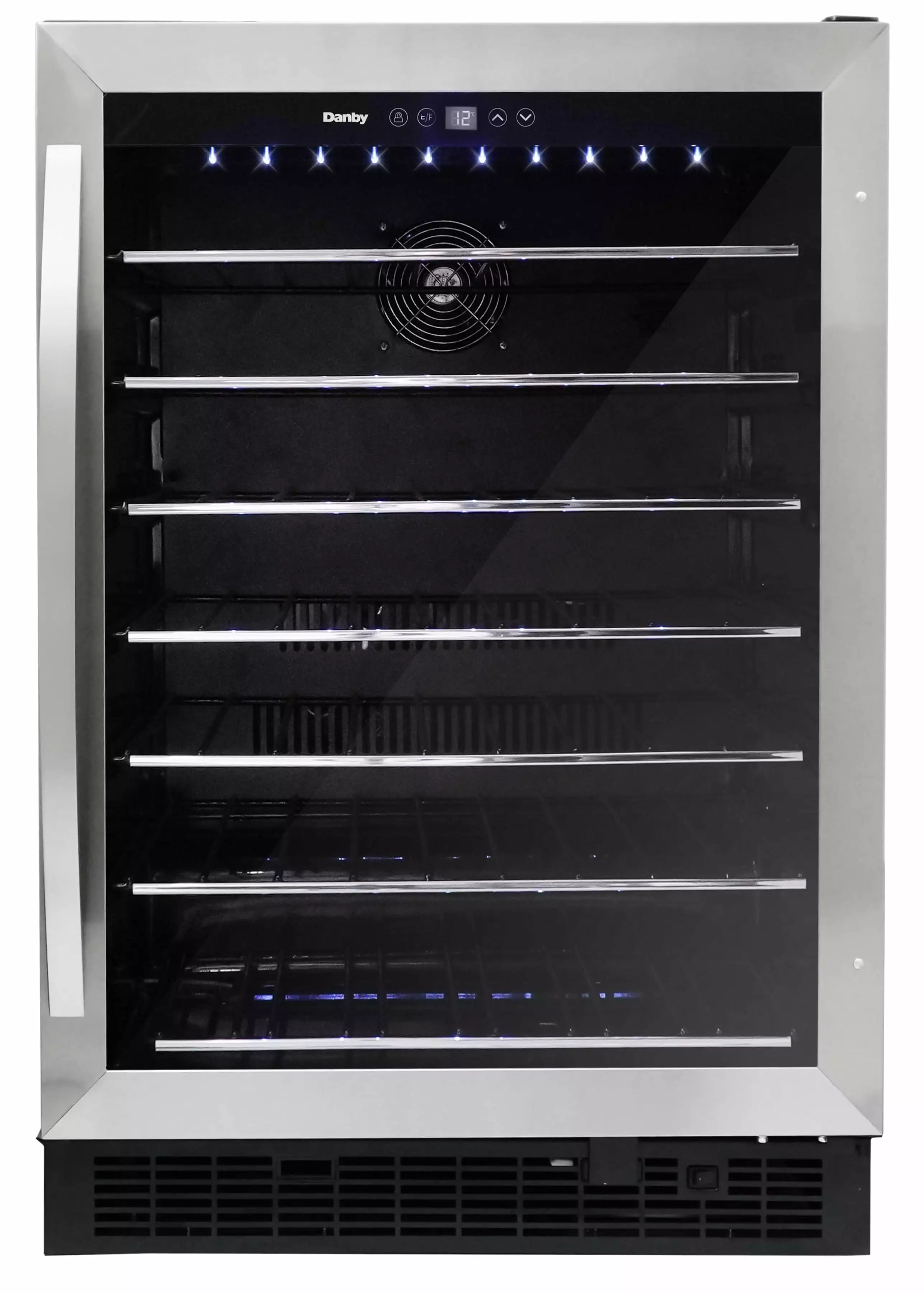 The serious wine aficionado will appreciate this chic wine cooler with its 5.7 Cu. Ft. 60-bottle capacity. It can be used as either a freestanding or built-in unit and comes with a temperature range between 5°C and 18°C (41°F and 64°F). The thermostat is precise and easy to read with its electronic LED display unit. This enables you to easily program and monitor the temperature of the cooler at all times as it can easily be seen through the stylish tempered-glass door. The wine is kept cooler with the presence of an incandescent light bulb and there’s plenty of room for your favorite brands due to the 6.5 sliding black-wire shelves. The door also features a stainless steel handle and frame and the convenient reversible hinge allows you to set it for either left or right-hand opening. The wine cooler also comes with in-home service on its 12-month parts and labor warranty.