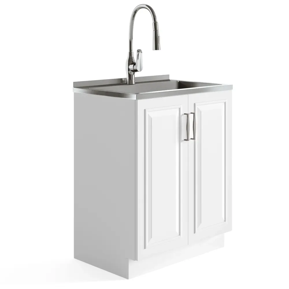 Darwin – Deluxe Laundry Cabinet With Pull-Out Faucet And Sink – Pure White