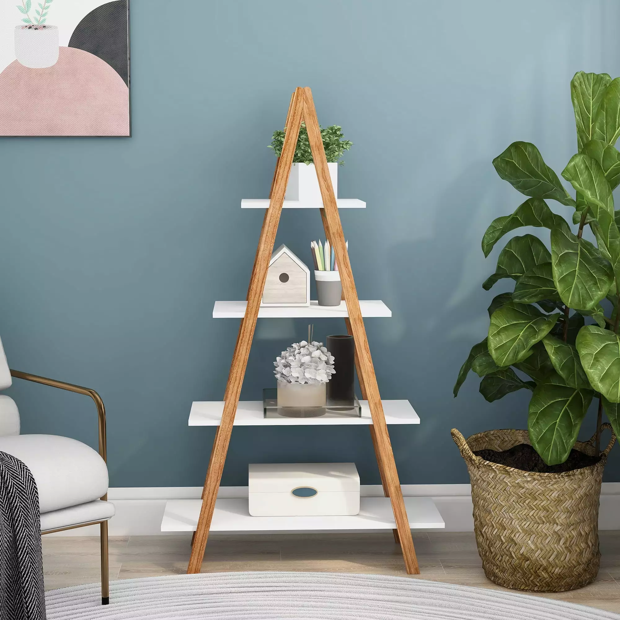 Stylish. elegant. simple and versatile design can be used for a variety of home dcor. featuring ‘A’ shaped construction and stepped shelves.