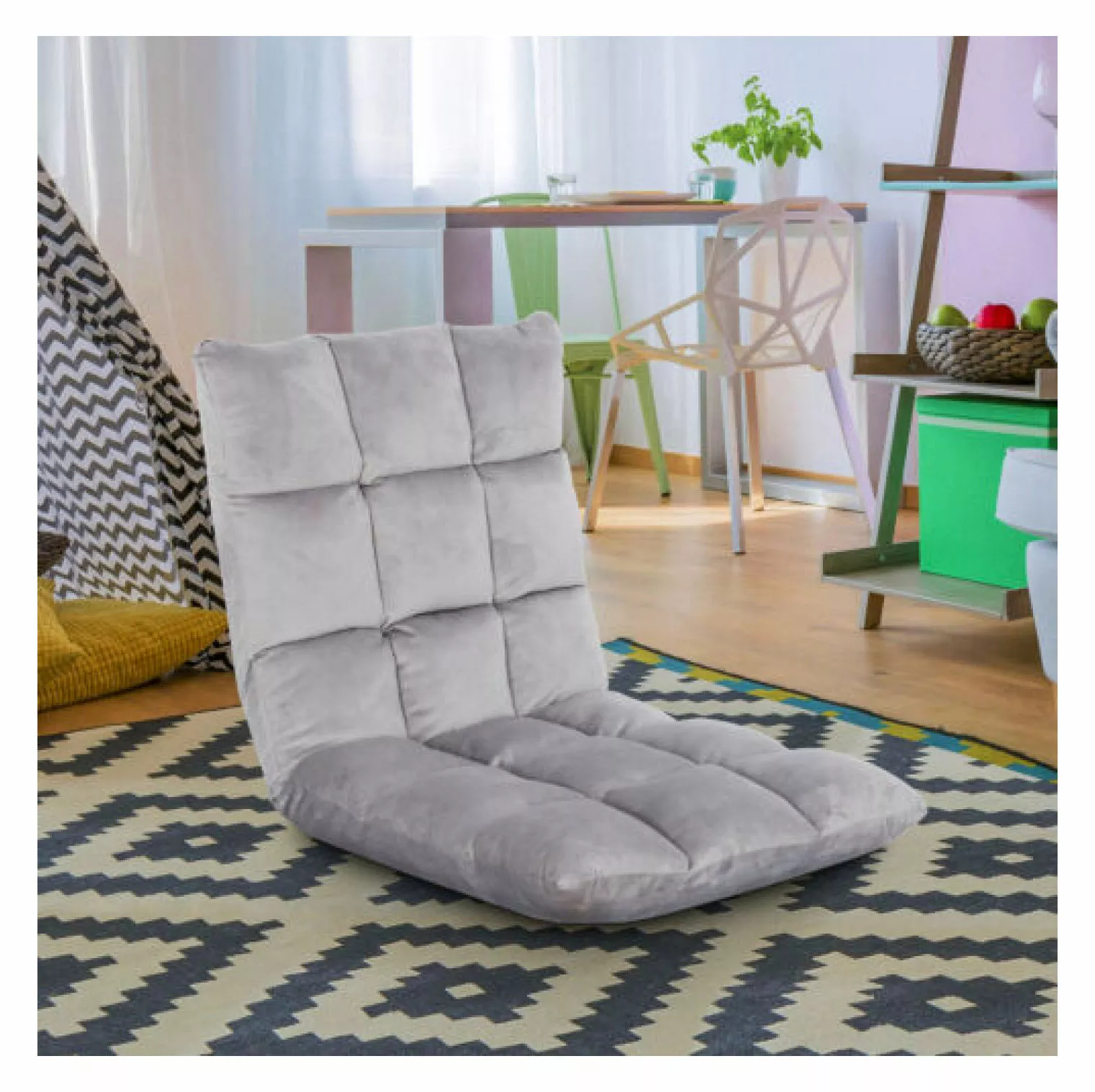Features**When you’re gaming. comfort is a must. Not does discomfort pull you out of the game. it also causes lasting pain.This foldable gamer chair cushions you from back to behind. providing unbeatable lumbar support and comfort round after round.Don’t need the extra seating Don’t just let this gamers chair take up extra space. Store it with ease by folding it flat and stowing it under a bed or sofa!The surface of this item has 18 lattice. and simple one color design. it could suit for different home decorate .It is much easier to transport than most other furniture. This makes our lounge chair easy to take to grandma’s house. or to drag from room to room within your home.Specifications:Development size: 100 * 50 * 12cm / 39.37 * 19.69 * 4.72inItem Weight**2.75kg/6.06lbThe height of the 14th gear is adjustable. and the overall size of the 14th gear is 50 * 51.5 * 51.5cm / 19.69 * 20.28 * 20.28inHeight of the highest point of the seat back of the 14th gear from the ground:From low to high 12. 14.5. 19. 22. 27. 31. 3539**42**44.5**47**.5**50**51.5cmSitting size: 50 * 50cmBack size: 50 * 50cmMaterial**Metal**Polyester cottonColor**Blue
