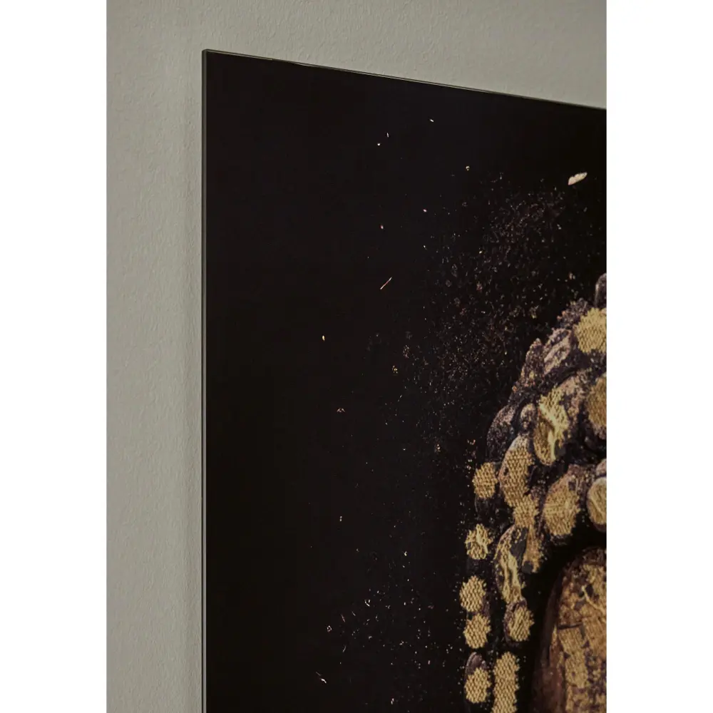 This glass wall art is the perfect addition to a tranquil space. With muted, calming shades of black, teal, rust and gilded, this contemporary take on the meditating Buddha instills instant serenity in your home.