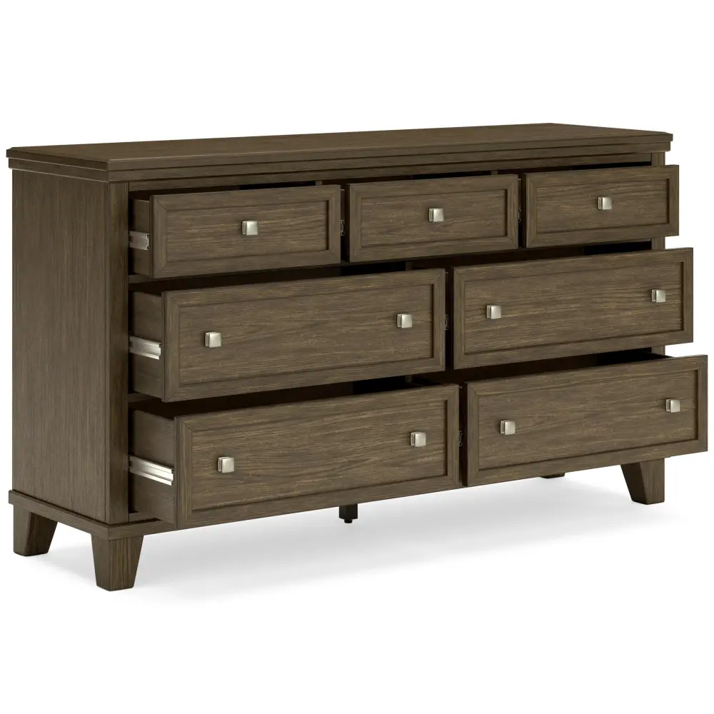 This dresser is well-suited to everyday living with its expertly balanced approach to style and function. Take the stress out of decorating—a vintage medium brown finish easily pairs with existing furniture pieces. And its timeless design stays in style as you update your space, so you can effortlessly enjoy the day-to-day comforts of home.