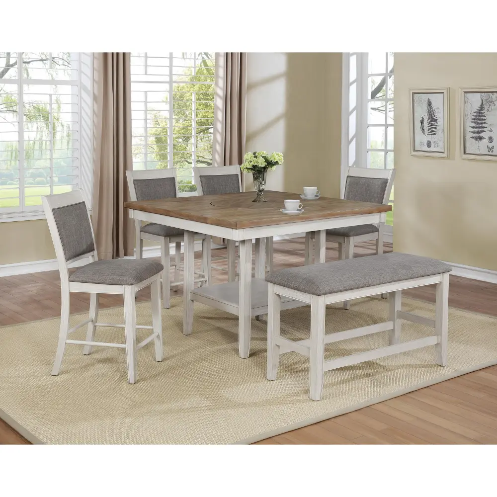 This Fulton bench from Crown Mark will be a perfect choice in your dining room. It features upholstered seating, straight legs, and a white finish. Pair with the matching counter height table and stools to create a fun arrange.
