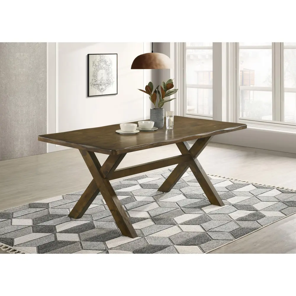 This timeless styled dining table from the Alston collection adds charm to the dining space. Constructed of solid hardwood with knots that’s both durable and desirable. Organic wood grains give the table a bucolic ambiance. Table edge is given a worn, distressed look that imparts an element of coziness. Add ladder back chairs and/or bench (available separately) to entire the set.
