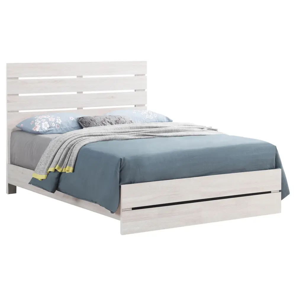 Fashioned for quality, this gorgeous, wooden bed is a fabulous choice. The plank style headboard and matching footboard exude classic simplicity. Durable craftsmanship ensures lasting quality for night after night of restful sleep. A 3D paper veneer makes it easy to clean and maintain. This bed is flawless for adding no-nonsense style to any bedroom in your home.