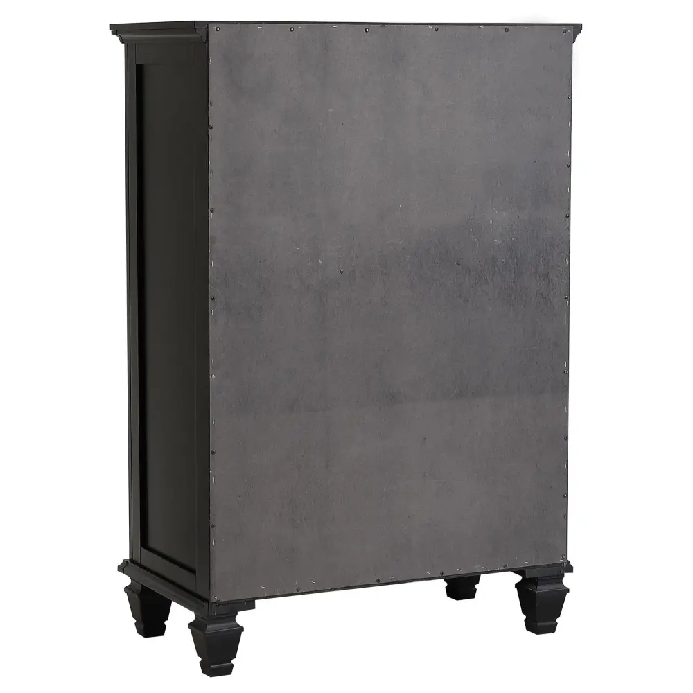 Toss in both storage and timeless elegance to your bedroom with this beautifully crafted chest of drawers. Featuring five spacious drawers, this chest offers plenty of room to organize your clothing, linens, and other essentials. The felt-lined top drawer provides added protection for delicate items, while the brushed nickel hardware adds a touch of modern sophistication. Constructed from solid hardwood and engineered wood, this chest is created for durability and lasting appeal. Finished in a neutral color, it complements both traditional and transitional bedroom styles, bringing both beauty and functionality to your space.