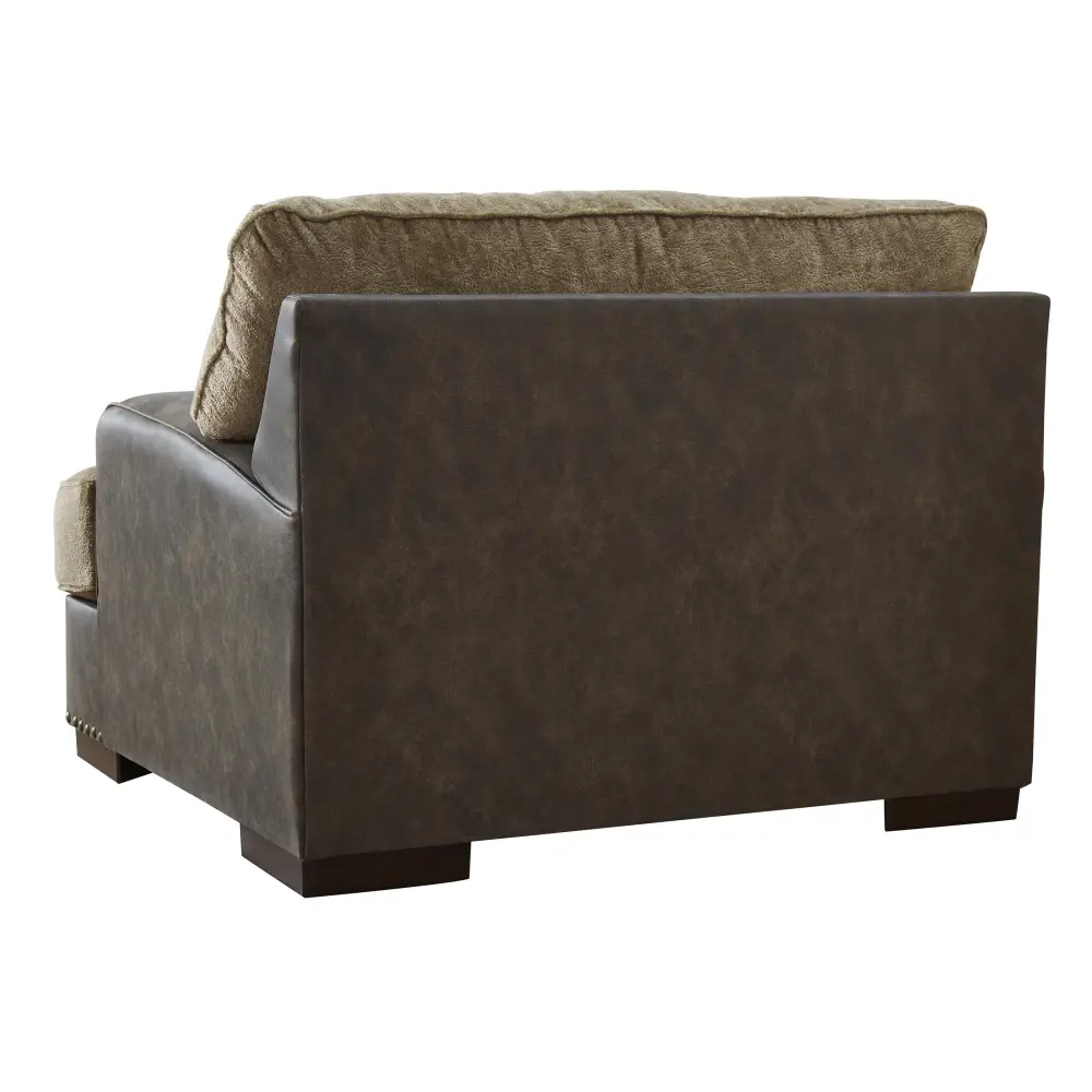 Voluminous but not over-the-top, this chair is perfect for those who love the look of leather. Two textural tones provide twice the style and comfort—and incorporate an added layer of visual interest. The piece is punctuated by a subtle band of nailhead trim.