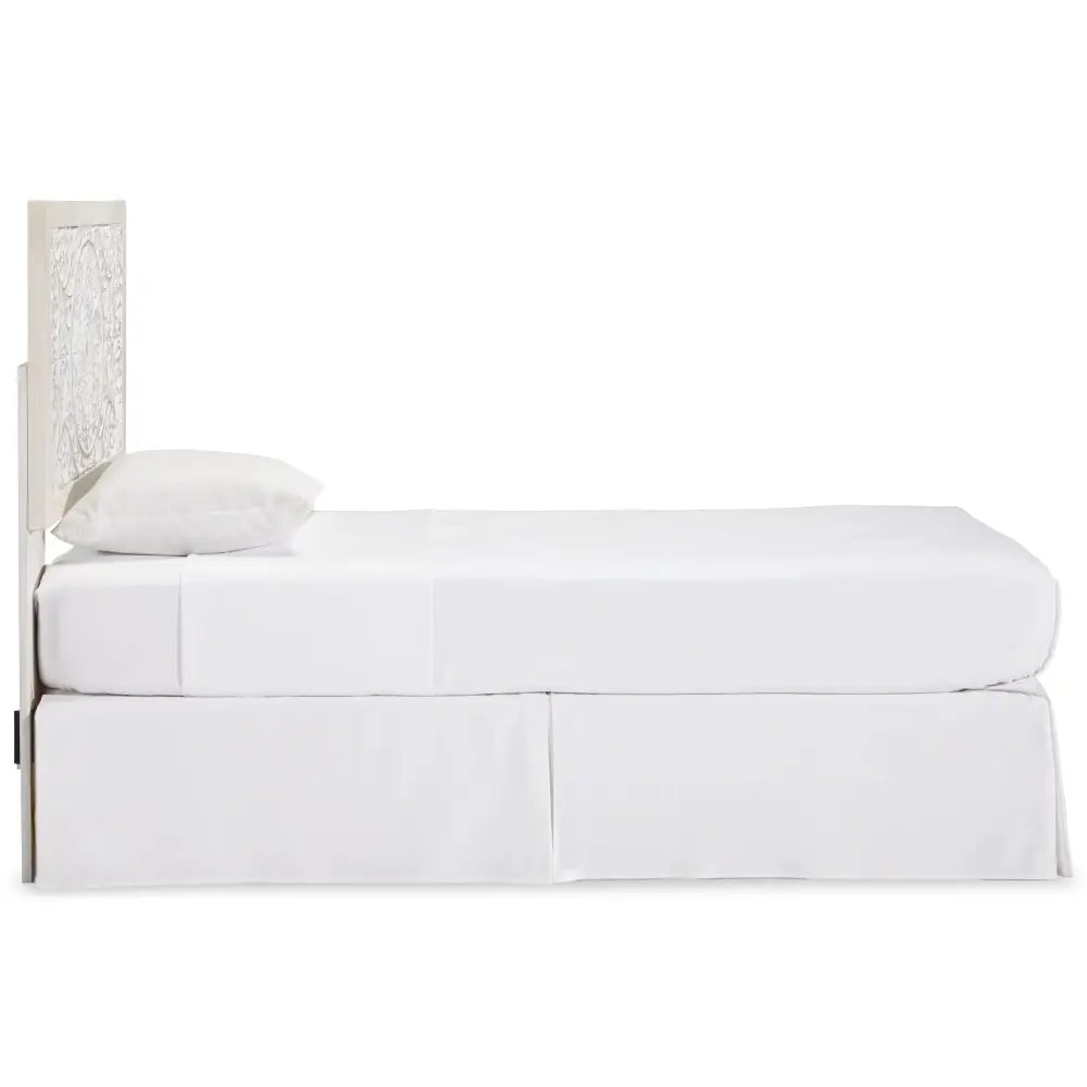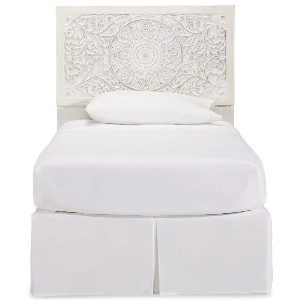 Your young trendsetter can live out her free spirit with this twin headboard. Exquisite detailed medallion pattern is a testament to boho-chic style. Charming whitewashed finish sets a foundation for a room bursting with personality. Adjustable height design offers added flexibility.