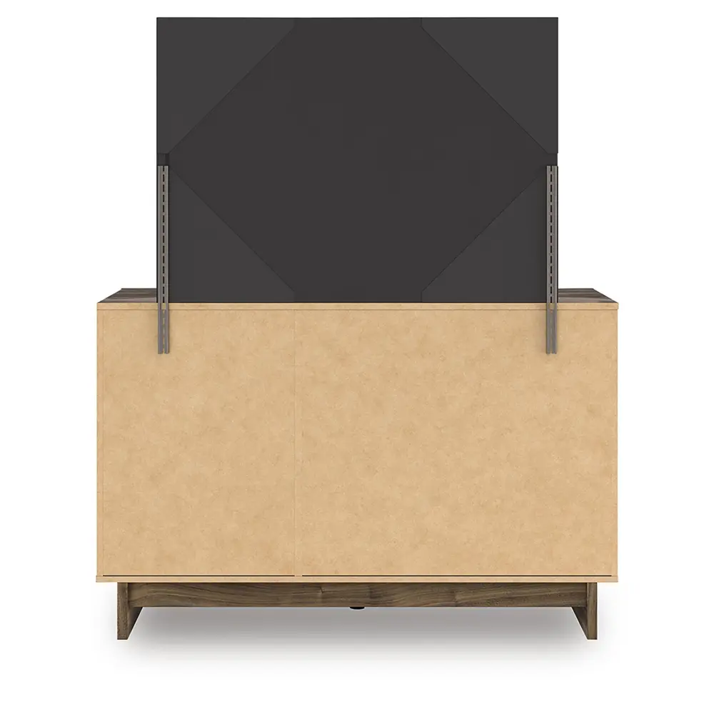 Nostalgic style, retooled for today’s trends. This dresser with mirror puts an elevated twist on mod aesthetics. Its warm brown tones reflect the mid-century vibes you love, while the angular base incorporates contemporary motifs. Integrated drawer handles round out the look in sleek style. With this dresser, you can build your bedroom into a current haven with a touch of retro-cool flair.
