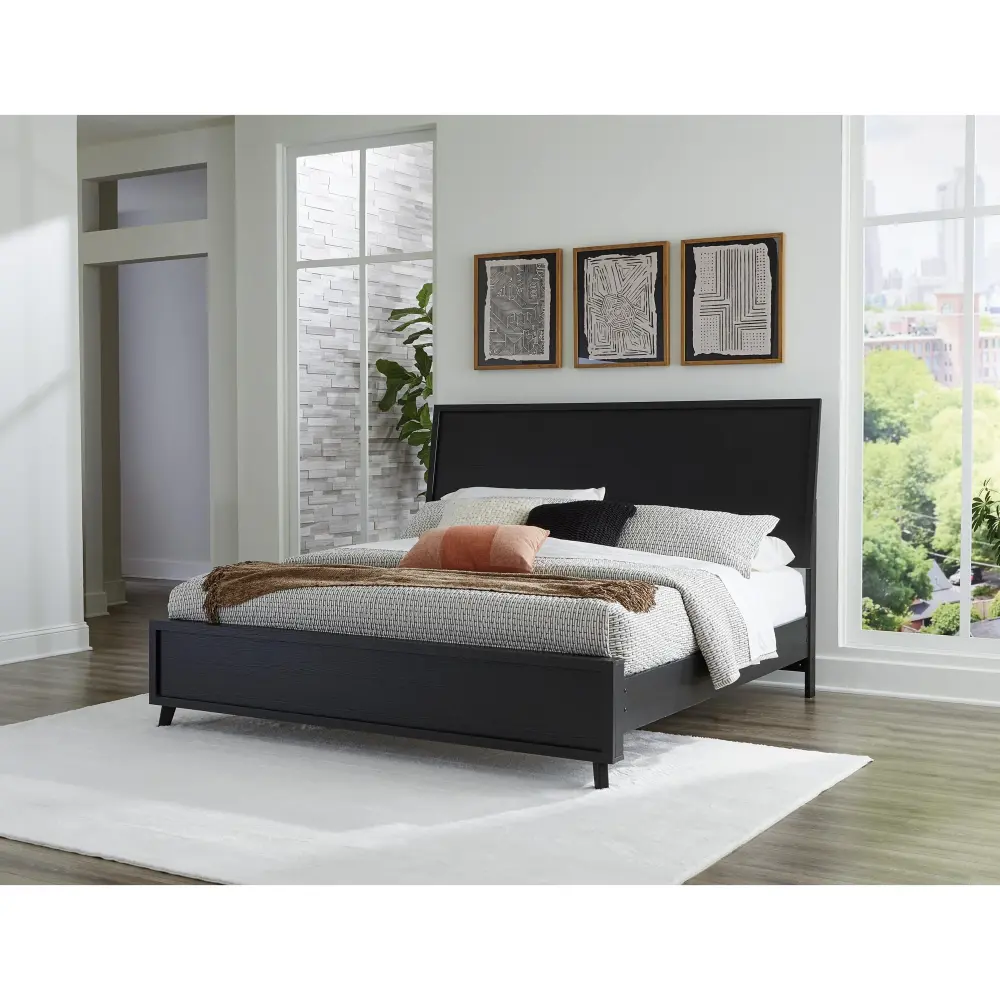 Sophisticated style for the savvy shopper. This panel bed prioritizes affordable, on-trend design. Its subtle replicated texture recalls the natural beauty of wood, highlighting the clean-lined styling. And a dull-finish charcoal finish savvily suits different approaches to modern aesthetics. Mix and match with light and bright hues, or pair with other dark tones for a moody look.