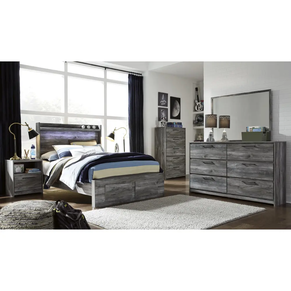 Rest in the beachy style of this thorough panel storage bed. Its driftwood and smoky finish and cool LED lighting give this bed an easy-going vibe that’s perfect for creating a relaxed getaway. Keeping everything neat and tidy, two smooth-gliding drawers provide plenty of under bed storage.
