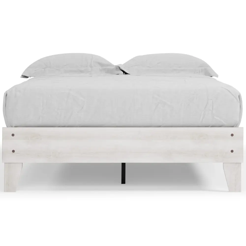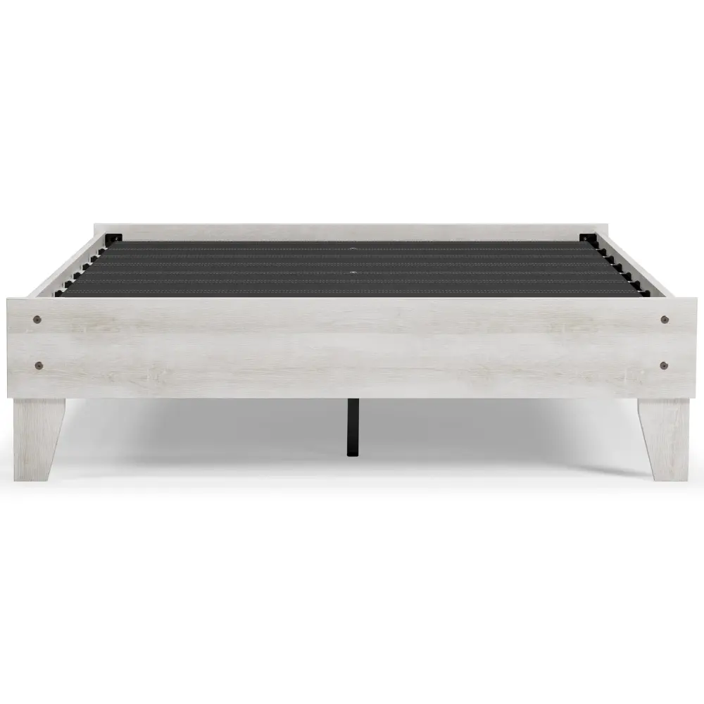 Give provincial a novel meaning with the chic look of this full platform bed. The whitewash distressed finish keeps this piece light and fresh, as does its minimalist aesthetic.