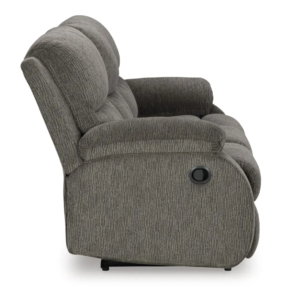 Craving a simple spot to relax and recharge? This reclining sofa encourages you to take a break from the everyday grind. Its contemporary bustle back and versatile hue bring stylishly soft comfort to a seating area. And when you’re ready to recline, the user-friendly pull tab motion has you kicking back in no time.