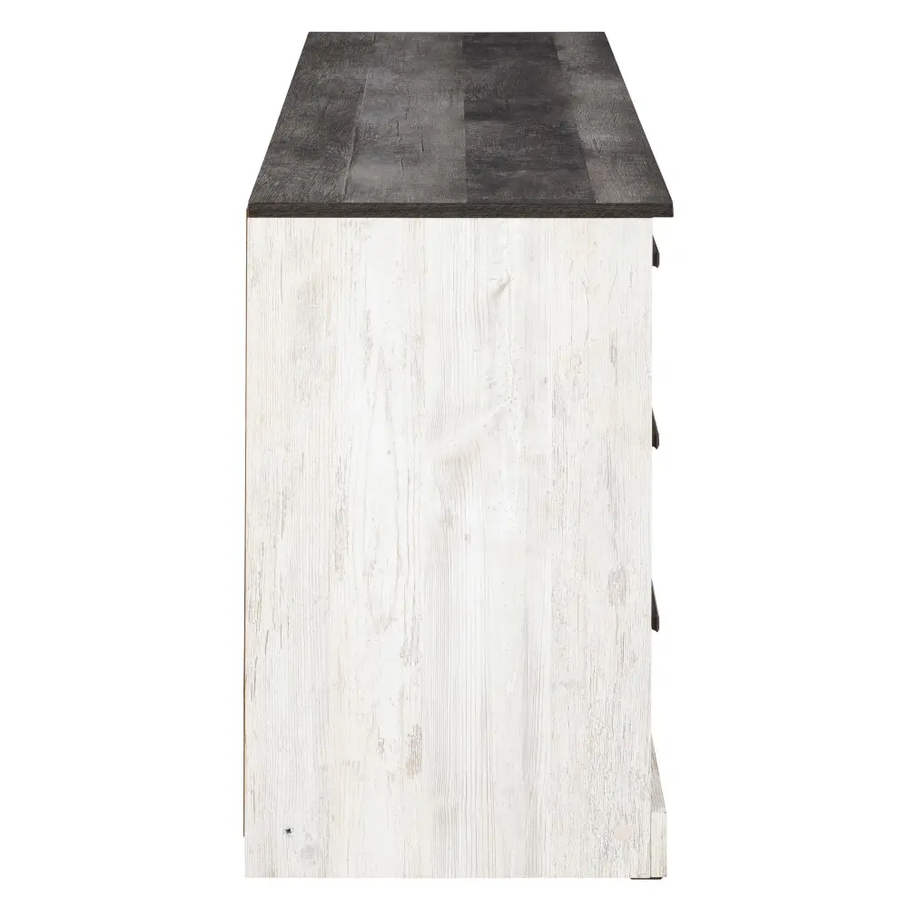 Give provincial a new meaning with the chic look of this dresser. The two-tone finish keeps this piece featherlight and fresh while the warm pewter-tone hardware adds an industrial touch. The distressed whitewashed body adds a delightfully homespun charm to your space.
