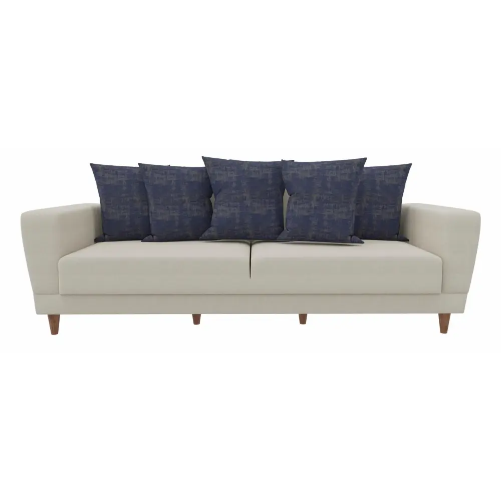 The Dolce 3-Seater Sofa Bed from Enza Home will make a great addition to your living room. It features flared track arms, tapered feet and is upholstered in Cream and Navy fabric.