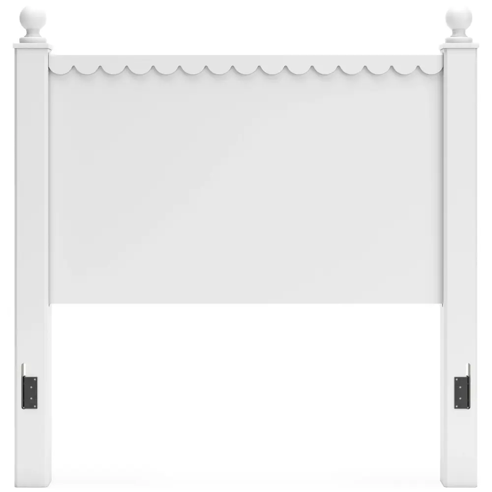 Make morning or bedtime that much more magical with this full panel headboard. Charmingly cute with its scalloped detailing, it appeals to both her sense of playful whimsy and your love for modern design. And the headboard’s crisp snow finish gives you the versatility to pair it with existing decor.