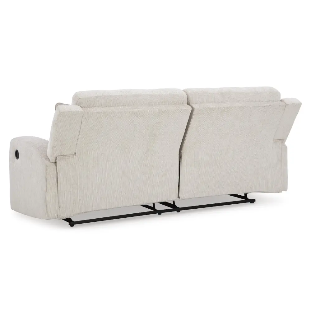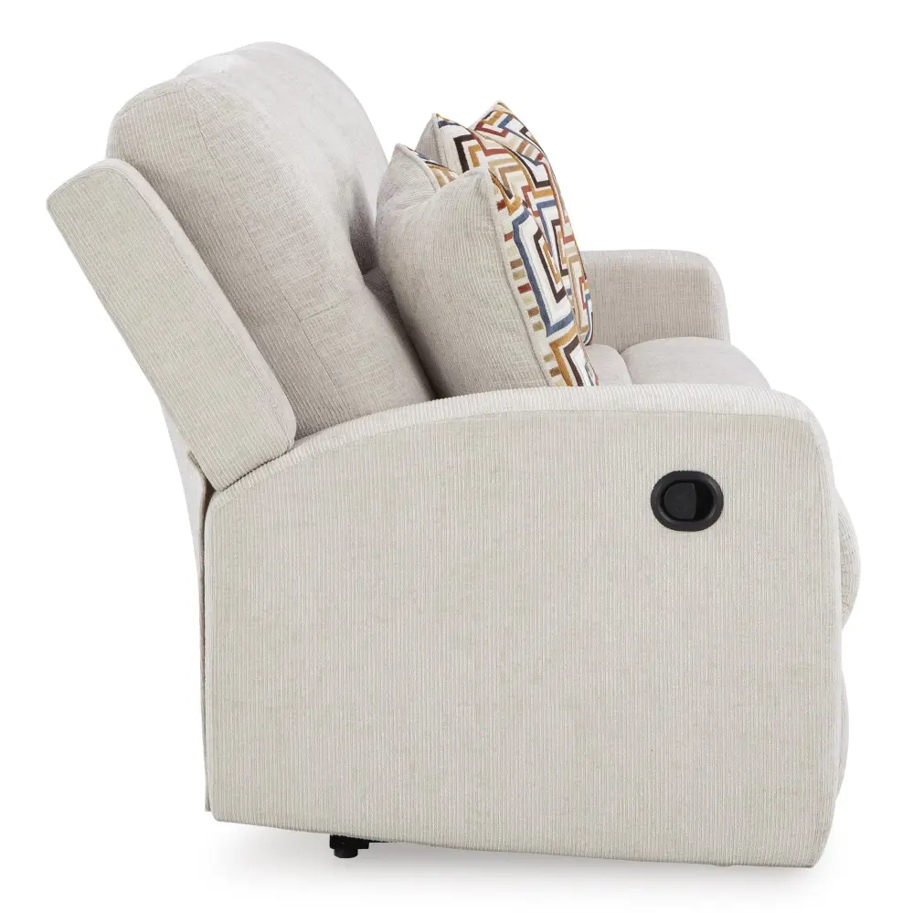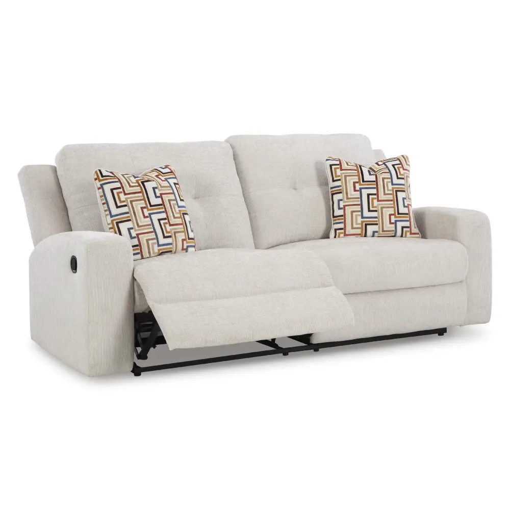 This reclining sofa invites you to a luxuriously cushiony lounging experience. The chic hue fits right in with contemporary color palettes. A tufted back keeps the look right on trend. Balancing style and function, its pull tab reclining effortlessly takes you to relaxation mode.