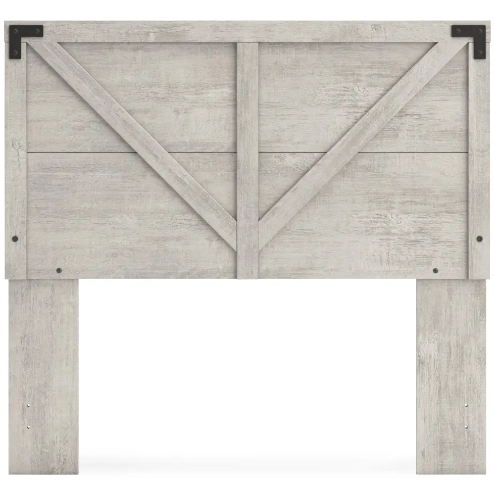 Give casual a new meaning with the chic look of this full panel headboard. A lightweight gray finish over replicated oak grain keeps it laid-back and inviting, while crossbuck details and pewter-tone accents add a modern farmhouse touch. Talk about a delightfully relaxed vibe in your inner sanctum.