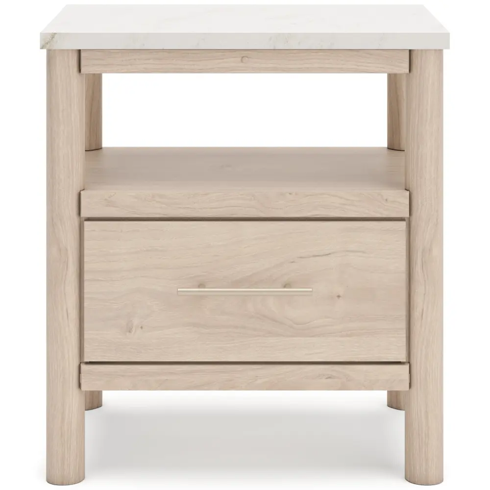 Transform your bedroom with this nightstand. With its clean lines and replicated marble top, it exudes a minimal and sophisticated boho style. Built-in lighting and charging capabilities add simplicity and ease to your everyday tasks. Tailor your space and create the excellent environment for sweet dreams.