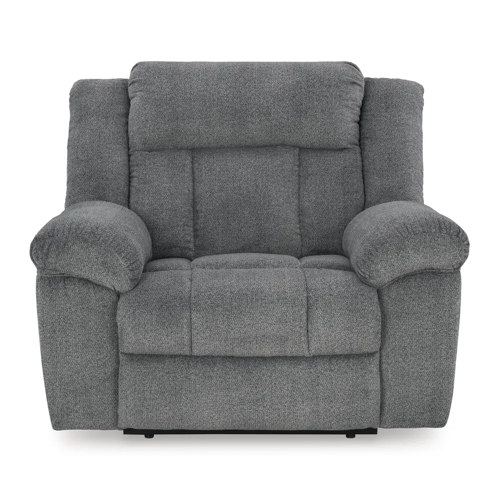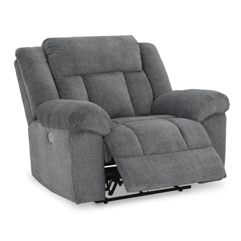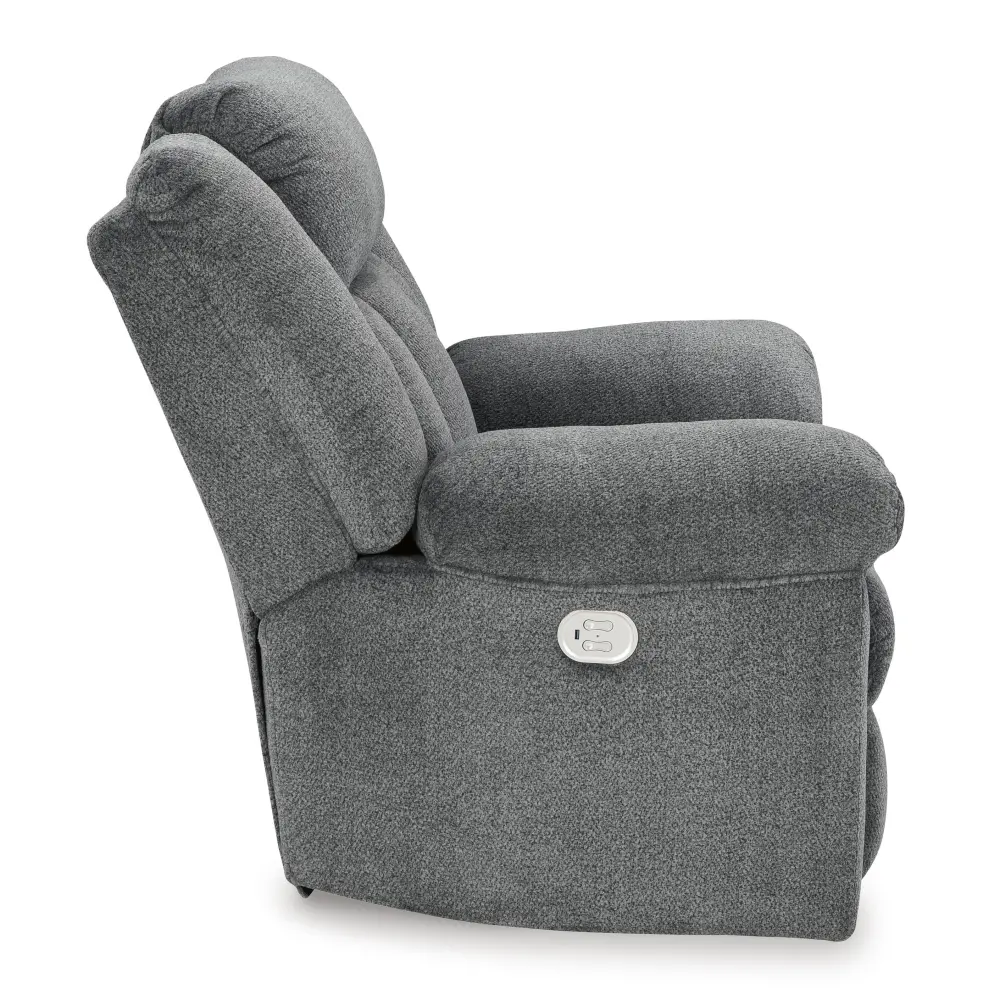 Big, bold comfort. Game time and movie nights meet their match with this power recliner. Made for ultimate indulgence, an extra-deep seat encourages you to sit back and bliss out. Configure the recliner and headrest to find your premium viewing position with effortless one-touch controls. And with plush upholstery in a trendy hue, you won’t need to sacrifice style for cozy seating.