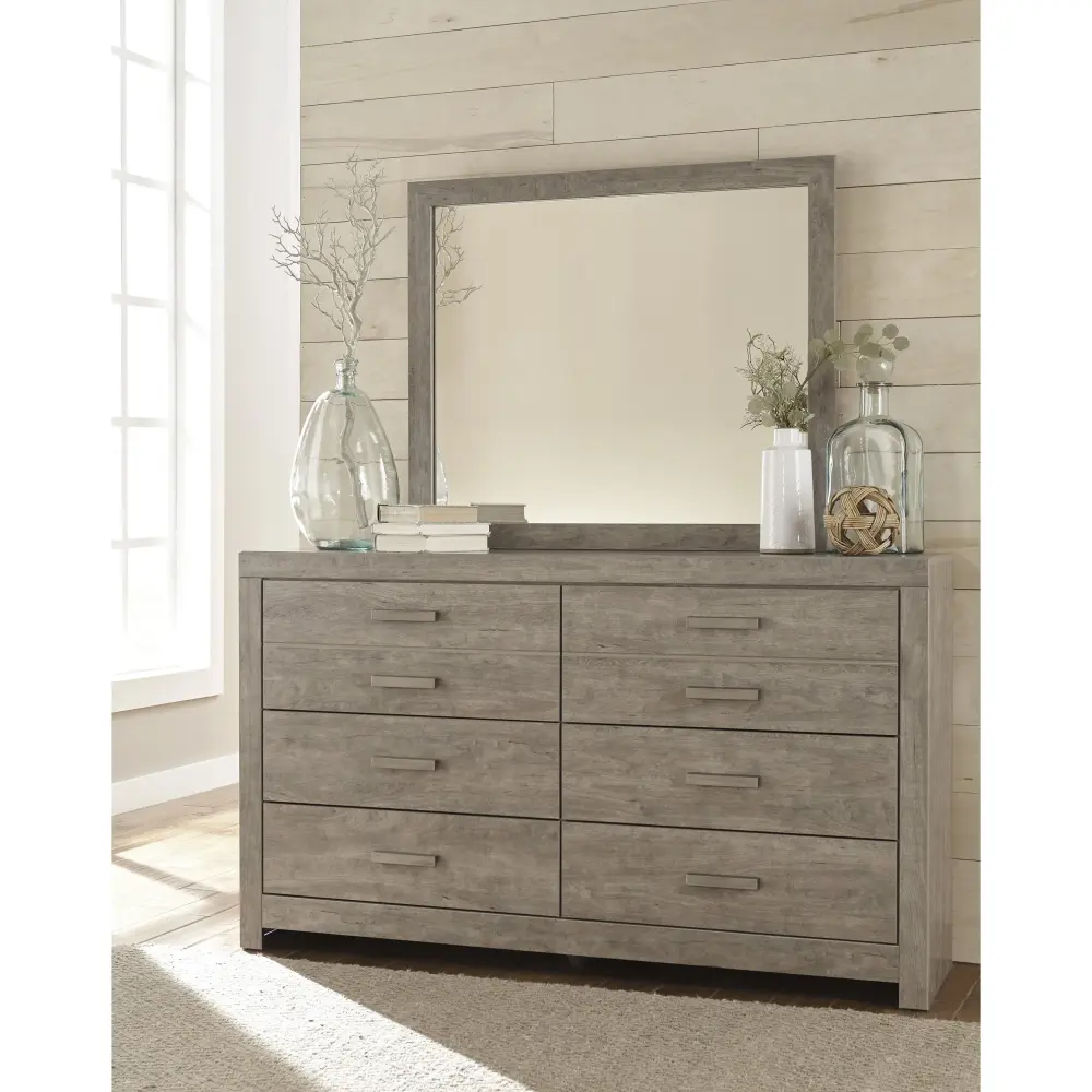 This dresser and mirror’s weathered driftwood finish evokes such an ethereal vibe—exactly what you need for your serene master suite. Unstained lines and simple yet substantial hardware make for a timeless look you’ll love living with for years to come. Six spacious drawers offer ample storage for a wardrobe and spare bed linens.