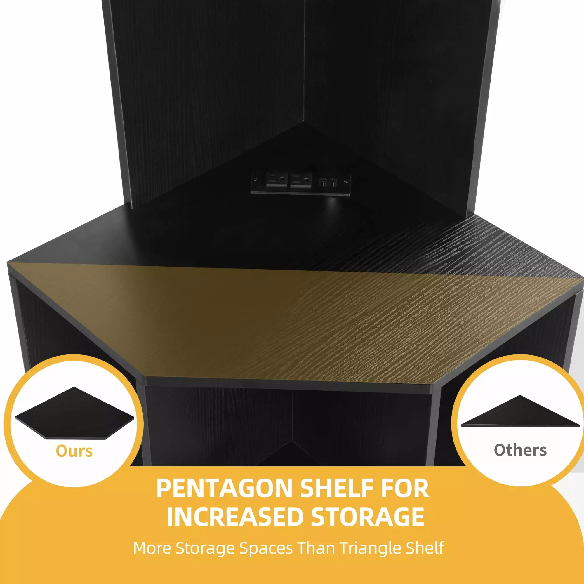 - Ample Storage Capacity: With its unique pentagon design. this wooden corner shelving unit provides more storage space compared to traditional triangular shelves. It boasts a total of 12 open storage cubbies. offering ample room to accommodate your various storage and display needs. Organize and showcase your belongings in style.