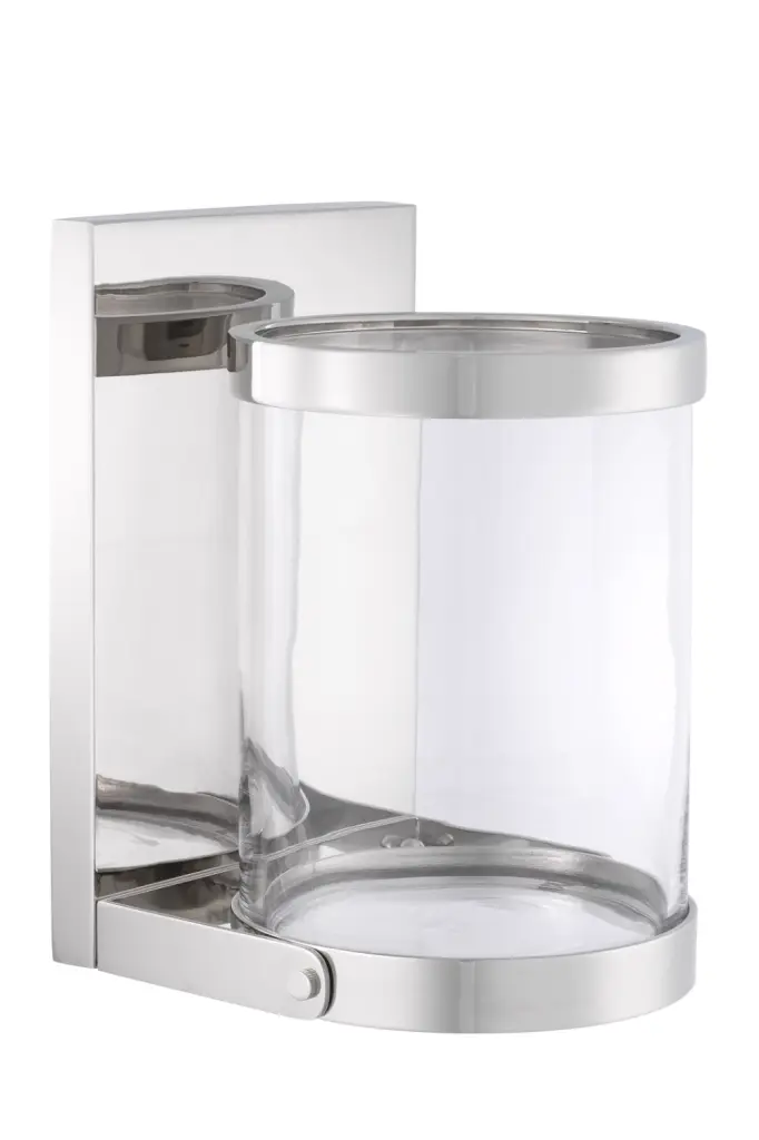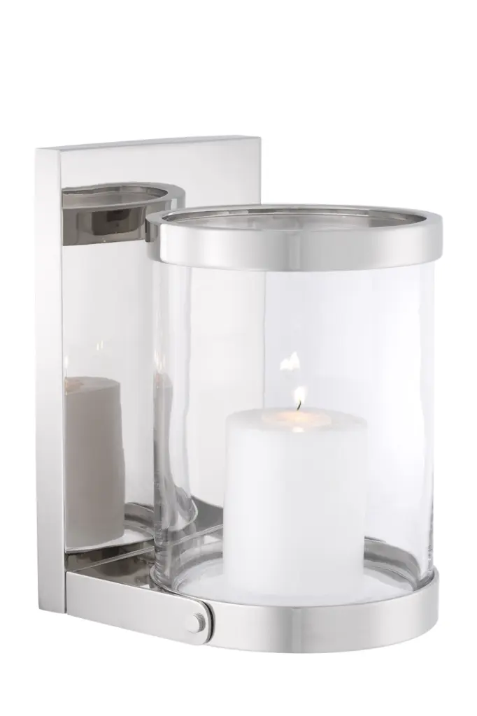 Give your hallway, lounge or bedroom a refined look that will stay en vogue for years to come with the Dominic Wall Hurricane. The wall plate, holder, and glass shade of this lovely light source feature a nifty nickel finish. Combine with a faux pillar candle (not included).