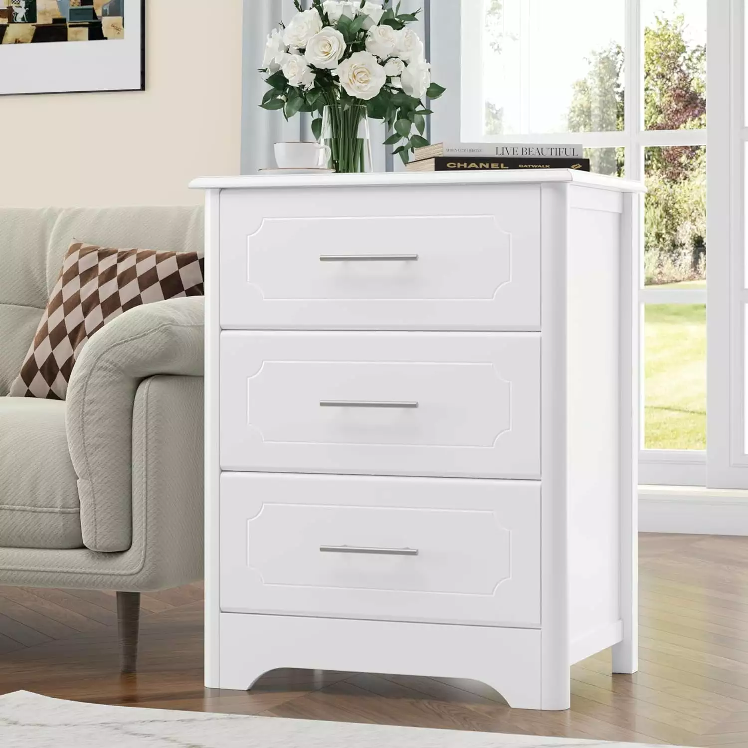 - VERSATILE DRESSER: It not only can be used alone or in pairs as a nightstand. but also serves well as a makeup drawer dresser. sofa table. end table. side table. small corner table. storage accent table in bedroom. living room. or hallway to park your oft-used items