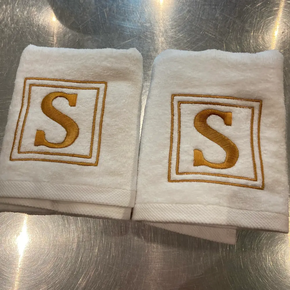 EMBROIDERED INITIAL TERRY HAND TOWEL ✓ Concealed mounting hardware for clean look ✓ Includes bubble level for straight mounting ► Hang Towels Securely Here