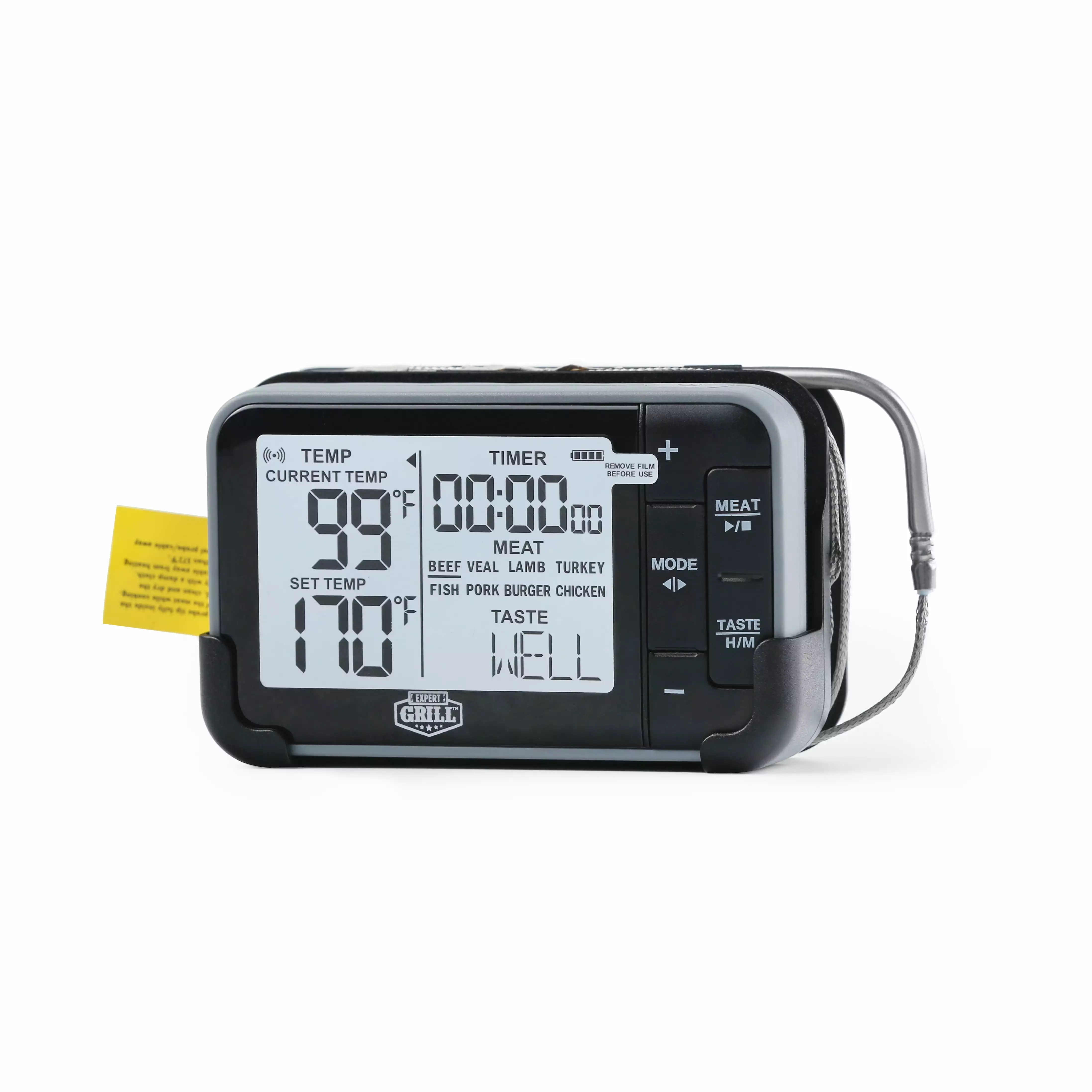 Make perfect grilling even easier with the Expert Grill Red and Black Wireless Digital BBQ Grilling Meat Thermometer. An essential tool for pit-masters and beginning grillers alike. this thermometer allows you to precisely cook steaks. hamburgers. ribs. chops. pork shoulders. chicken breasts. and more. The two-piece transmitter receiver allows you to monitor your food up to 100 feet away. giving you the ability to prepare sides. drinks. and other types of food. entertain your guests. or just get other things done as your food cooks safely to the desired temperature. Designed with a food grade stainless steel probe. it provides accurate readings within 4 F (2.2 C) at -4 F to 302 F (-20 to 150 C) for great grilling and smoking every time. The probe is even high-temperature rated to withstand temperatures up to 716 F (380 C). An easy-to-read backlit LCD display screen and a programmable timer help make outdoor cooking even easier. The Expert Grill Wireless Digital Grilling Thermometer is a great birthday. Christmas. anniversary. Hanukkah. other holiday gift idea for cooks of all levels and helps make any barbecue. back yard party. outdoor gathering. weeknight grilling. or other outdoor event a success. Perfect for low & slow grilling. smoker cooking. pellet grill cooking. WARNING: Thermometer probes are sensitive instruments that can be damaged by flames or direct heat. This thermometer is designed for indirect cooking and smoking. If you want to measure temperatures with direct heat or high temperatures (i.e. searing steaks). try our instant read thermometer. If your thermometer is displaying odd temperature readings. your probe has likely been damaged. Please contact our support so we can help you get a replacement probe.