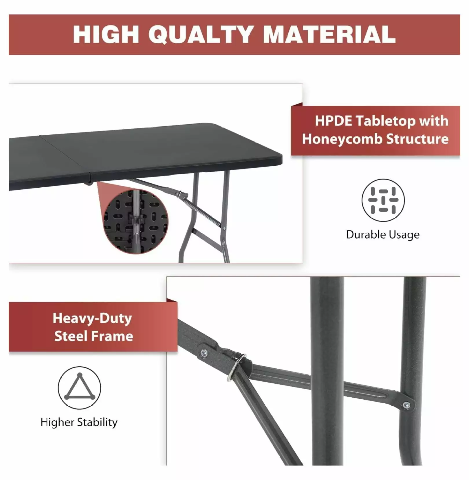 - 6 foot folding table is made of high density polyethylene (HDPE). 20% thicker than other fragile hollow folding tables. The honeycomb design conveniently disperses the pressure exerted on the table top. which can withstand up to 500 lbs.