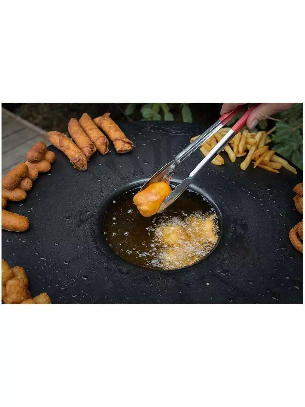 - Food stays crisp and hot on the rim until everyone is ready to eat