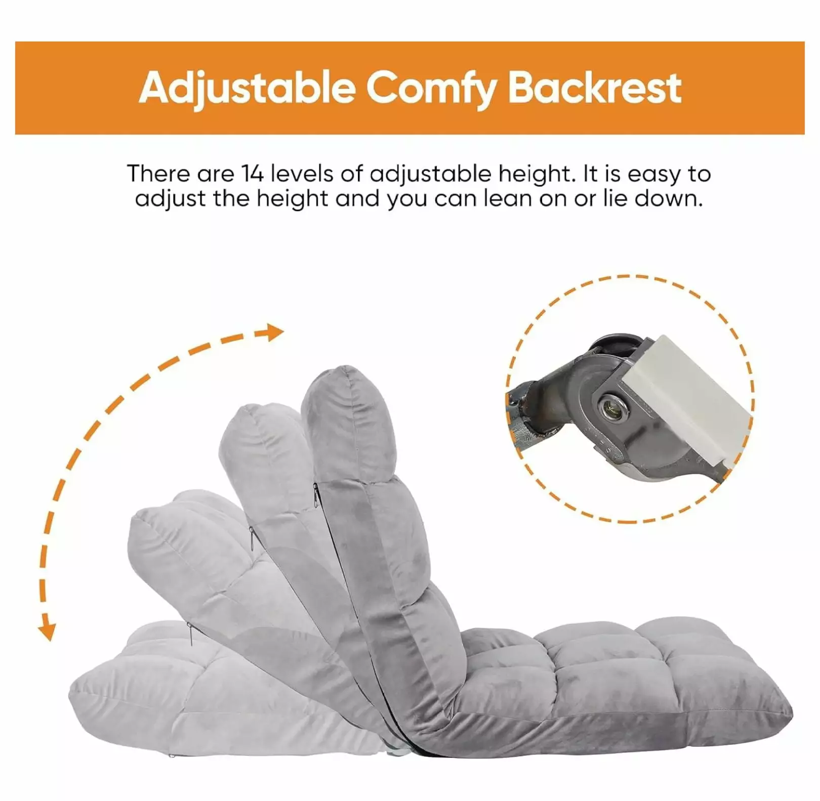 Features: – Comfortable and soft. easy to remove. environmental protection and health. – 14 adjustment positions for you to set the sofa chair up. so that you can enjoy your activity in the most precise and supportive position. Relieving back and neck pressure well! – Folding design. easy to storage. save space. mall footprint. lightweight and easy to carry. – Perfect for any room. such as kid’s bedroom. bedroom. children’s playroom. home officestudy. laundryutility room. living room. sunroom. – Perfect for playing games. reading books. watching movies. resting etc. – Classic gray color. and simple. and any of room are very compatible. Specifications: Color: Gray Materials: Soft Plush Fabric+ Premium Polyester Cotton Flat Dimensions: 40.75 (L) x 19.3 (W) x 4.73 (H) Folded Dimensions (90 degree): 19.3 (L) x 18.5 (W) x 18.1 (H) Cushion Thickness: 4.73 Net Weight: 6.06lbs2.75kg Max. Load Capacity: 255lbs115kg Adjustable Angle: 0°-84.5°.14 positions optional Package includes: 1 x Floor chairGaming Floor Chair Adjustable 14-Position Floor Sofa Bed Foldable Floor Cushions Seating Video Game Chairs Bean Bag Chair Reading Chair for Adults Kids Teens for Bedroom Living Room Indoor.Grey