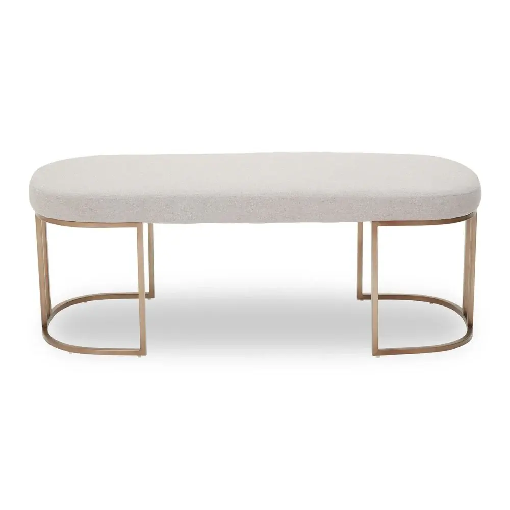 Giselle Bench – Grey Fabric & Antique Brass Frame