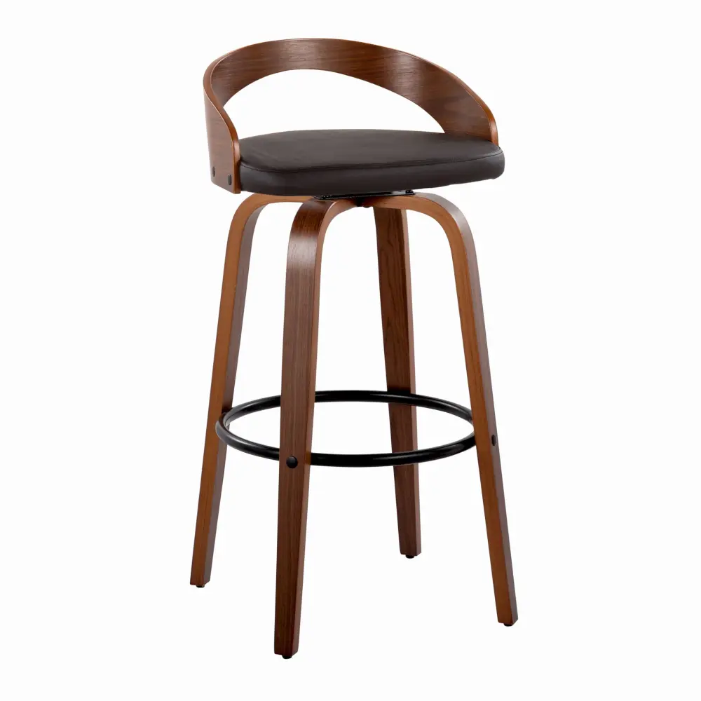 - Comfort and Functionality: This barstool incorporates a cushioned seat that swivels 360 degrees, providing comfort and flexibility. The bent wood legs come with a round metal footrest for added support.