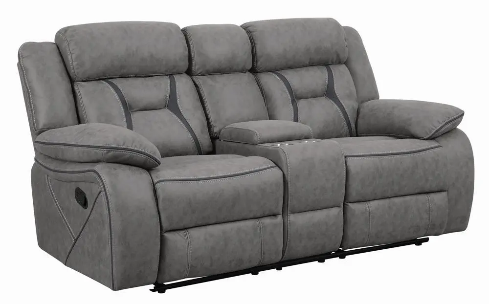 Higgins Pillow Top Arm Motion Loveseat with Console Grey Reclining Sofa