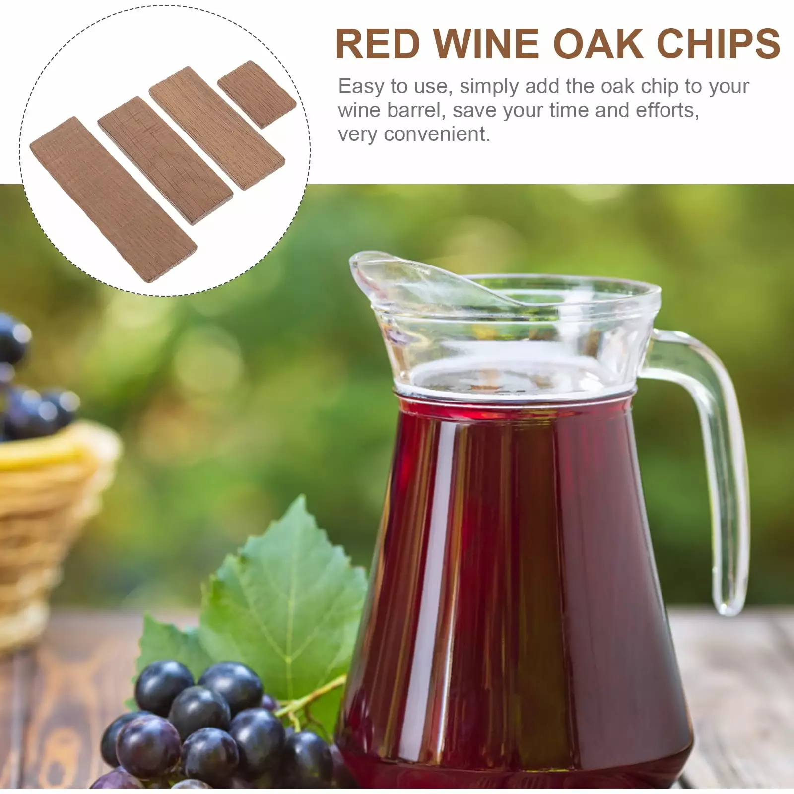– Compact in size. light in weight. the oak wood chip can bring you convenience to use. simply put some in the wine and wait for brewing work.