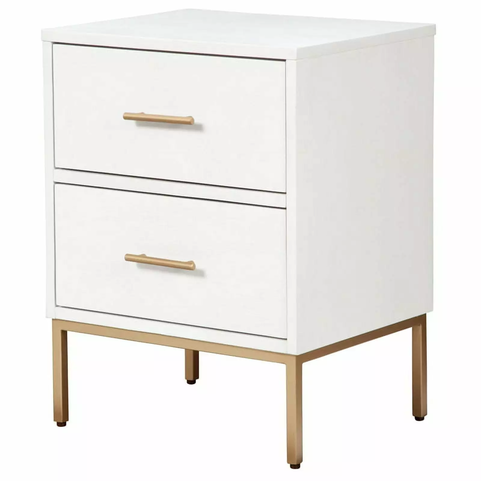 - Home Square Two Drawer Wood Nightstand in White x 1